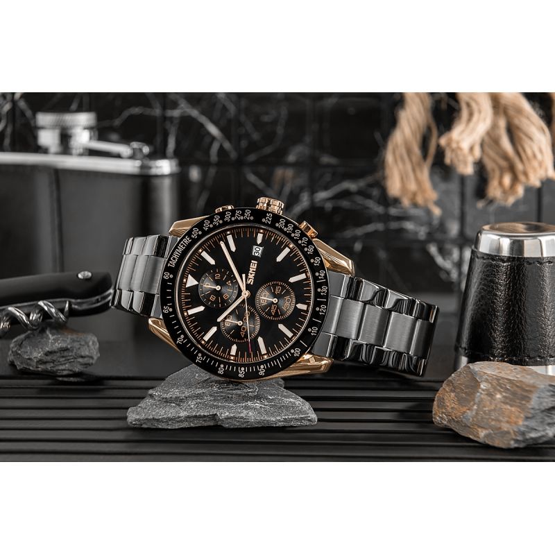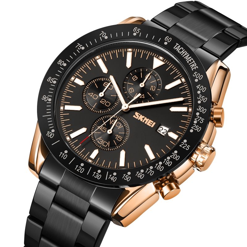 Das Design der Skmei 9253 erinnert an klassische und sportliche Modelle exklusiver Marken wie die TAG Heuer Carrera und die Rolex Daytona. Sie besticht durch eine elegante, von sportlichen Chronographen inspirierte Optik, während das Edelstahlgehäuse und die markante Lünette ihr einen professionellen und unverwechselbaren Look verleihen. Tragen Sie dieses luxuriöse Design jetzt an Ihrem Handgelenk.