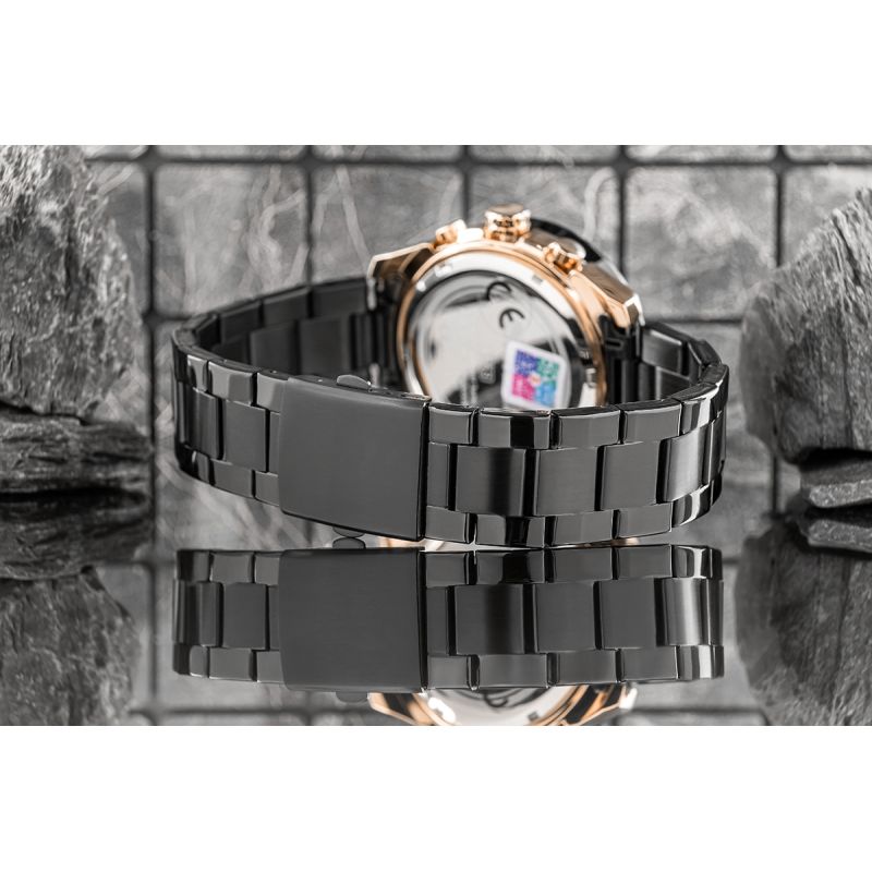 Die Skmei 9253 besticht durch ein von exklusiven Premium-Uhren inspiriertes Farbschema, das ihr einen einzigartigen Charakter verleiht. Das kupferfarbene Gehäuse und das schwarze Armband strahlen Luxus und Eleganz aus und bilden einen perfekten Kontrast zur tiefschwarzen Lünette und dem Zifferblatt – charakteristisch für die besten Designs internationaler Marken. Die mit Leuchtmasse beschichteten Indizes und Zeiger unterstreichen nicht nur den luxuriösen Stil der Uhr, sondern gewährleisten auch hervorragende Ablesbarkeit bei allen Lichtverhältnissen. Der rote Akzent am Sekundenzeiger verleiht ihr eine sportliche Note und verbindet Eleganz mit Dynamik.