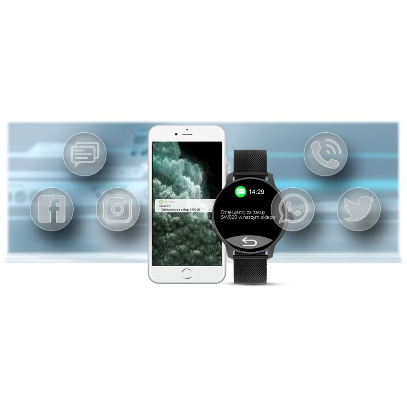 Eingehende Anrufe, SMS und Benachrichtigungen von Apps, die Sie auf Ihrem Mobiltelefon installiert haben – Facebook, Twitter, WhatsApp und Instagram – sind ab sofort sofort auf Ihrer Smartwatch verfügbar. So bleiben Sie immer über die neuesten Nachrichten auf dem Laufenden, die direkt auf Ihr Mobiltelefon übertragen werden.