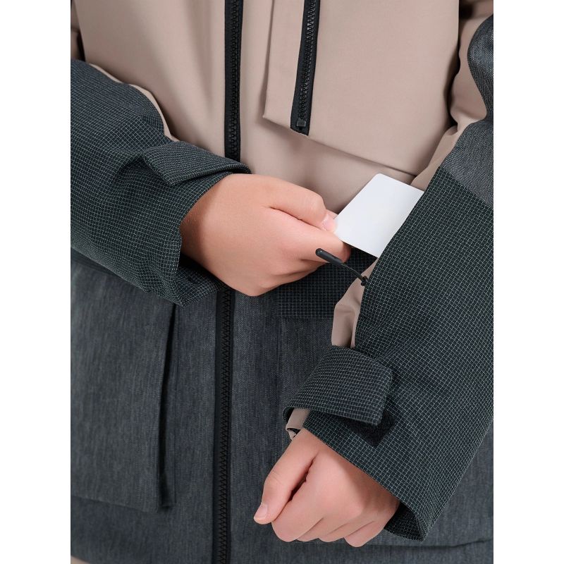 Zahlreiche Taschen – Seiten-, Brust-, Ärmel- und Skipasstaschen – sowie ein Innenfach für Skibrille und andere Kleinigkeiten sorgen für optimale Funktionalität. Dank integrierter Kapuze, Schneefang, Bündchen und Grow-Up-System wächst die Jacke mit Ihrem Kind mit. Reflektierende Elemente verbessern die Sichtbarkeit bei schwierigen Bedingungen.
