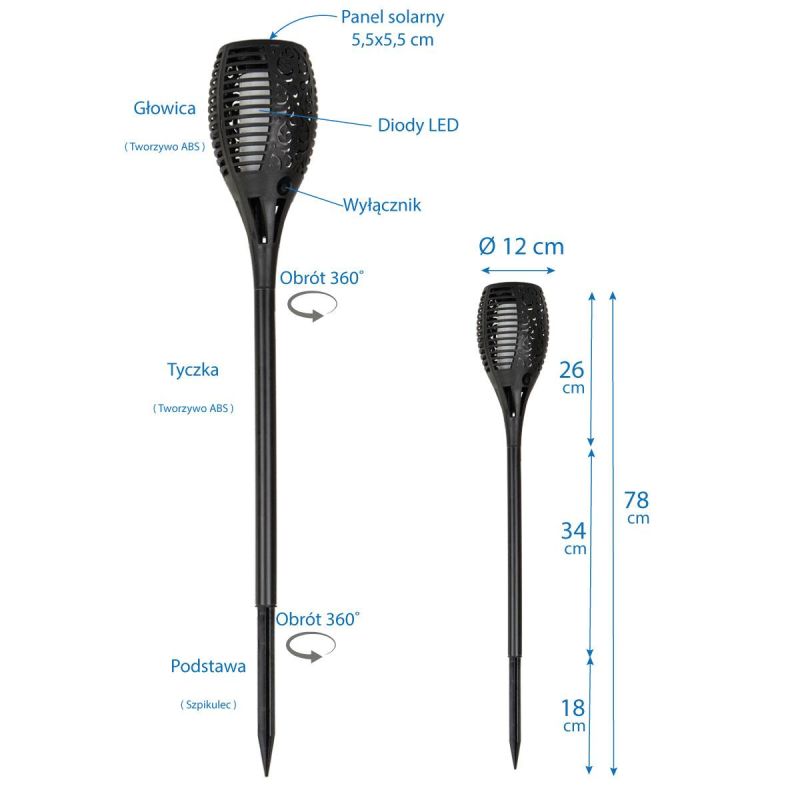 Solar-Fackel mit tanzenden Flammen, 12 x 12 x 78 cm, 36 LEDs, Größe XXXL