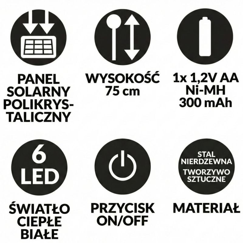 Solar-Graslampe mit 6 LEDs, 75 cm