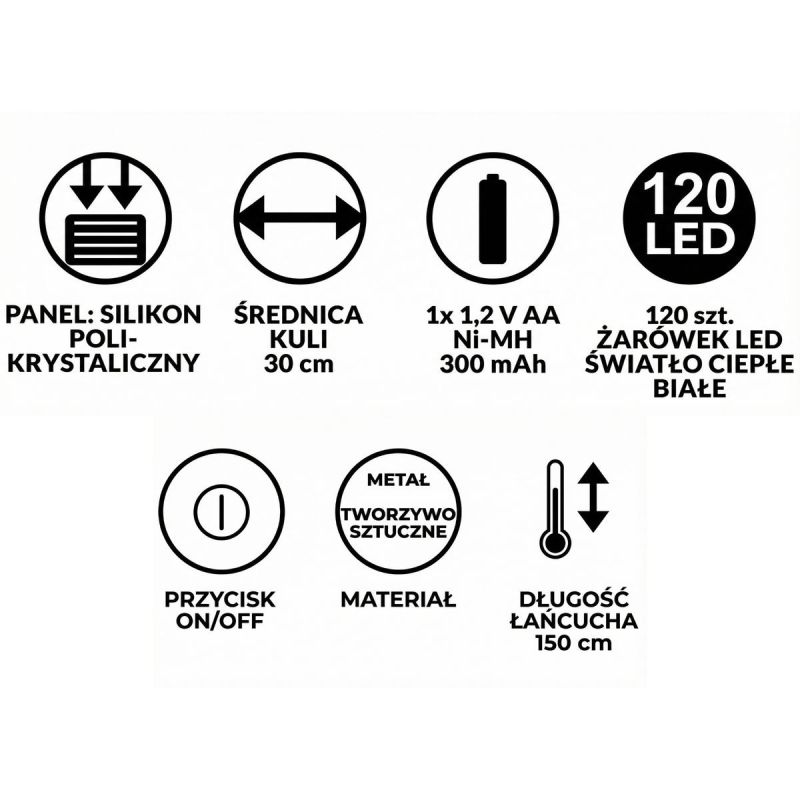 Solar-Hängelampe, Kugel, 30 cm, 120 LEDs, warmweiß