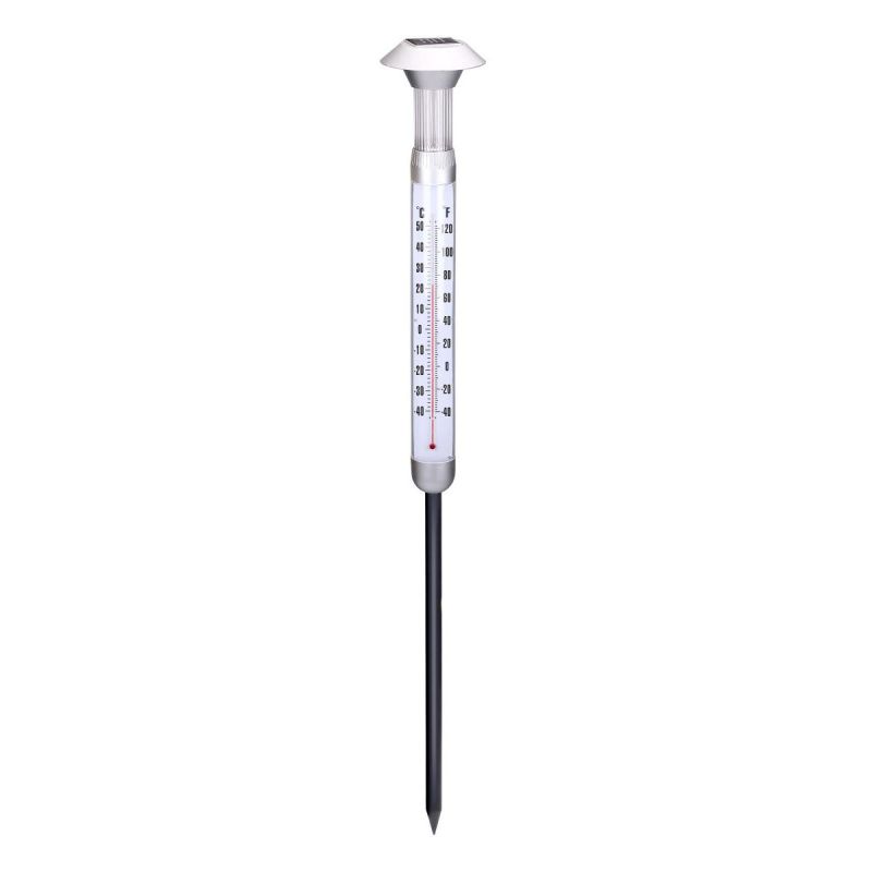 Diese Solarlampe beleuchtet den Raum nicht nur wunderschön, sondern dient auch einem informativen und dekorativen Zweck. Ihr modernes Design und die hochwertige Verarbeitung machen dieses Thermometer zur perfekten Ergänzung für jeden Garten, jede Terrasse oder jeden Balkon.