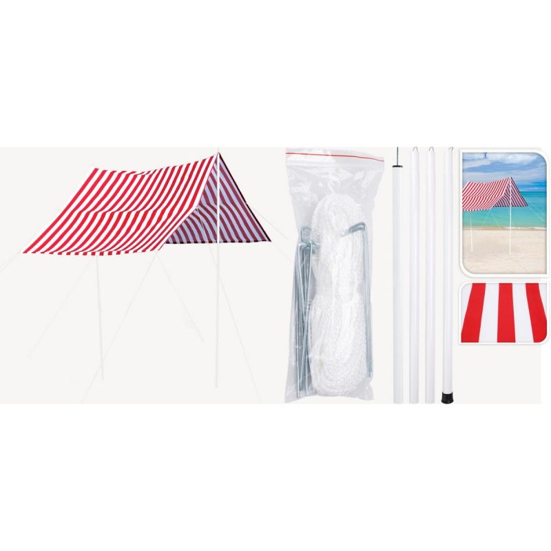 - ausgestattet mit Metallpfosten, die das Segel in der entsprechenden Höhe stützen