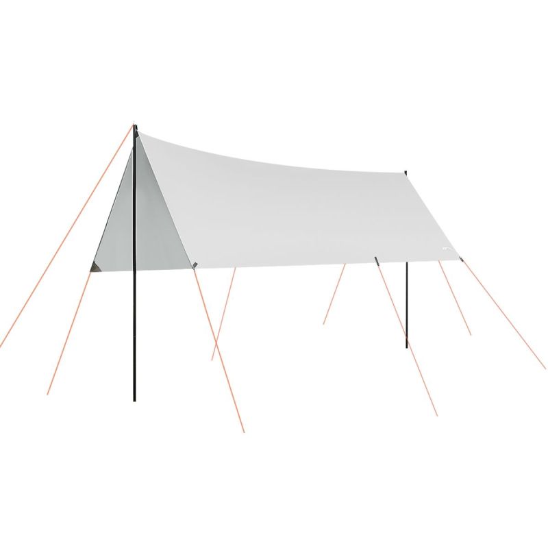 Dank der im Lieferumfang enthaltenen Metallstangen und Abspannleinen mit Heringen können Sie das Segel überall aufbauen und für jeden Zweck verwenden.