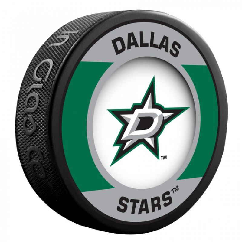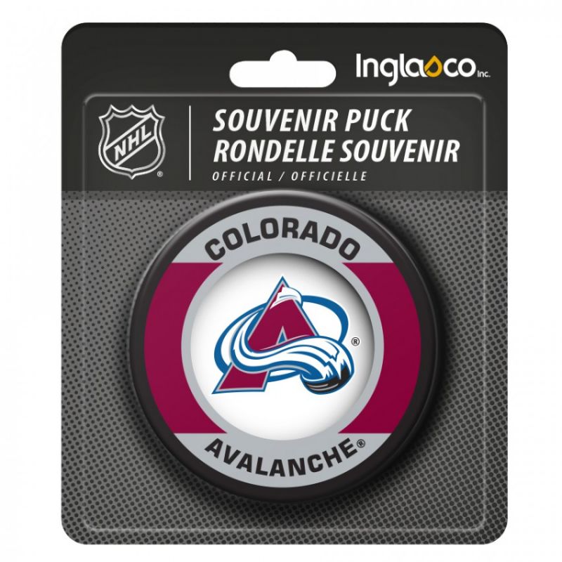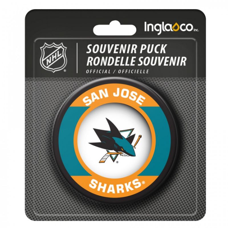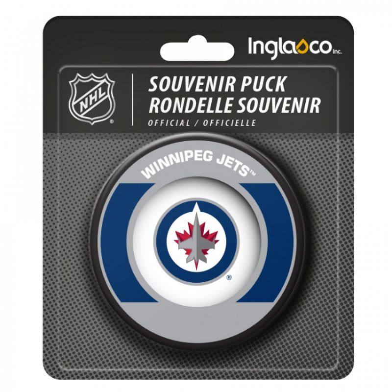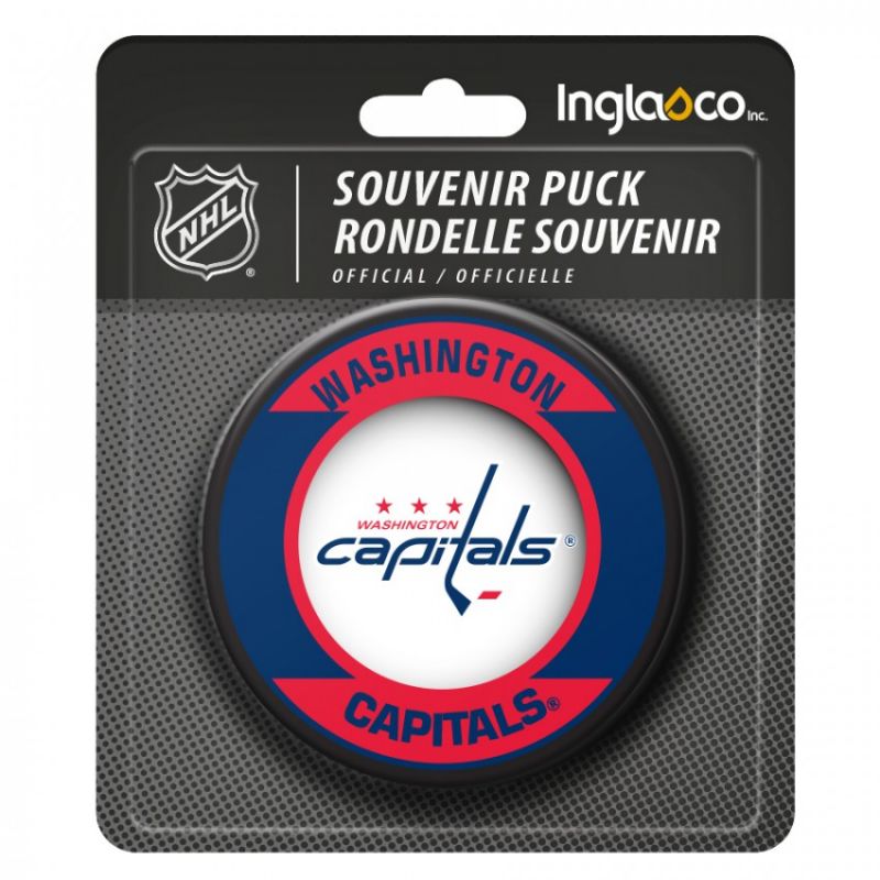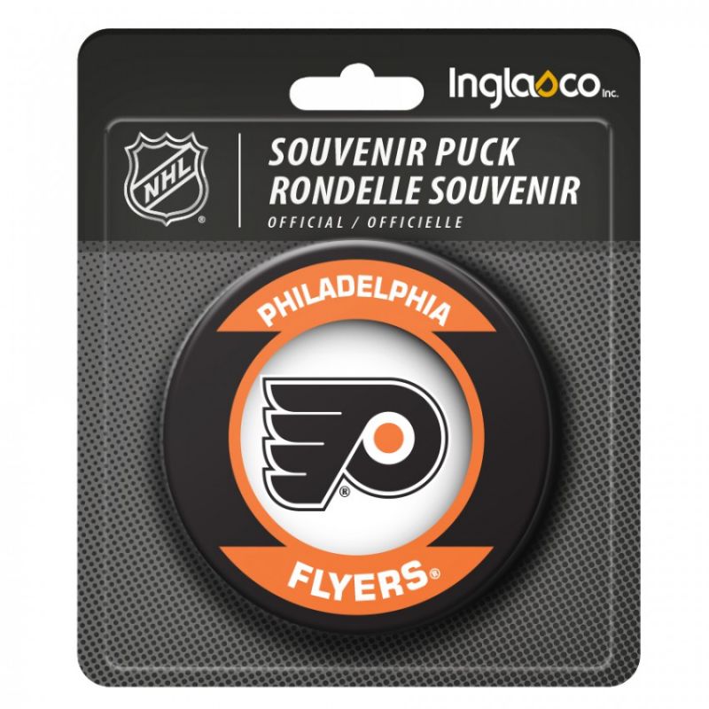 Inglasco NHL Retro-Souvenir-Hockeypuck. Dieser Souvenirpuck ist ein offizieller slowakischer Hockeypuck (170 Gramm) mit einem detaillierten Teamlogo auf der einen und dem NHL-Logo auf der anderen Seite. Der Durchmesser beträgt ca. 7,5 cm.