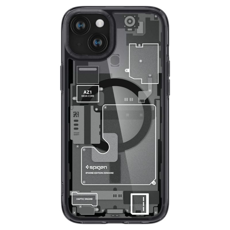 Spigen Ultra Hybrid Mag Case mit MagSafe für iPhone 15 Plus – Dunkelgrau (Zero One Pattern)