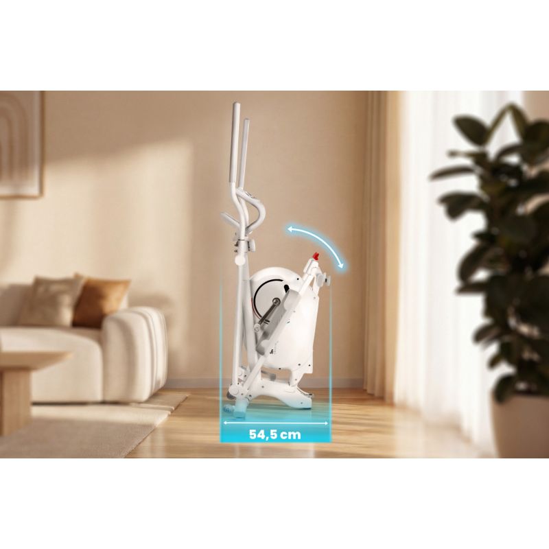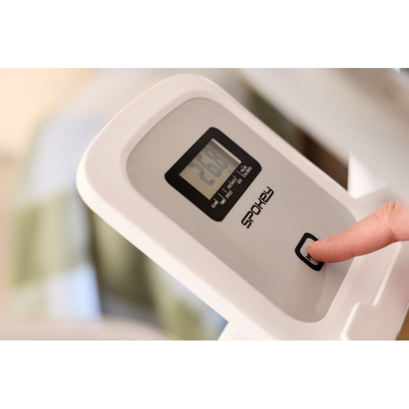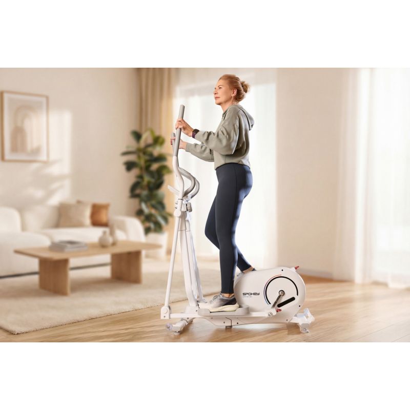 CRYSTAL – Ellipsentrainer für ein Ganzkörpertraining. Der Spokey CRYSTAL ist ein faltbarer Ellipsentrainer, mit dem Sie Ihren gesamten Körper bei einem Cardio-Training zu Hause trainieren können – ganz ohne Ihre Gelenke zu belasten. Ausgestattet mit Rückwärtsbewegung, Herzfrequenzmesser, 8-stufigem Magnetwiderstand und LCD-Display bietet er Funktionalität, Komfort und ein platzsparendes Design. Suchen Sie nach einem Gerät, mit dem Sie fit werden können, ohne das Haus verlassen zu müssen? Der Spokey CRYSTAL ist die perfekte Wahl für alle, die ein effektives Ganzkörpertraining mit Komfort und platzsparender Funktionalität kombinieren möchten. Dank Magnetwiderstand, leisem Betrieb und faltbarem Design eignet sich der CRYSTAL auch für kleine Räume. Das Gerät trainiert wichtige Muskelgruppen, ohne die Gelenke zu belasten – ideal für Anfänger und Fortgeschrittene. Warum sollten Sie das Spokey ZEN Heimtrainer ausprobieren? Ganzkörpertraining ohne Gelenkbelastung. Die elliptische Bewegung beansprucht die Muskulatur von Beinen, Armen, Rücken und Bauch und schont gleichzeitig die Gelenke – ideal für Menschen jeden Alters. Rückwärtsbewegung für mehr Abwechslung: Durch die Rückwärtsbewegung werden zusätzliche Muskelgruppen aktiviert und das tägliche Training bereichert. 8-stufiger Magnetwiderstand: Die manuelle Widerstandseinstellung ermöglicht die individuelle Anpassung der Trainingsintensität – vom Aufwärmen bis zum intensiven Cardio-Training. Pulsmessung und Trainingsdaten: Integrierte Herzfrequenzsensoren und ein LCD-Display helfen Ihnen, Ihre Fitness und Fortschritte zu überwachen: Zeit, Geschwindigkeit, Distanz, Kalorienverbrauch und Gesamtkilometer. Zusammenklappbar mit Transportrollen: Nach dem Training lässt sich der Ellipsentrainer einfach zusammenklappen und platzsparend verstauen. Tablet- oder Smartphone-Halterung: Mit der Halterung können Sie während des Trainings bequem Multimedia- oder Fitness-Apps nutzen. Detaillierte Beschreibung: Der Spokey CRYSTAL Ellipsentrainer ist ein universeller Ellipsentrainer, der effektives Training mit hohem Komfort vereint. Dank des 4 kg schweren Schwungrads mit bidirektionaler Bewegung werden die Übungen flüssiger und abwechslungsreicher. Der 8-stufig einstellbare Magnetwiderstand macht das Gerät sowohl für Anfänger als auch für Fortgeschrittene geeignet. Das ergonomische Design mit einer Schrittlänge von 31 cm sorgt für eine natürliche und komfortable Bewegung. Ein großer Vorteil ist die Klappfunktion: Zusammengeklappt benötigt das Gerät deutlich weniger Platz und lässt sich so leichter verstauen. Technische Daten Typ: Ellipsentrainer Widerstandsart: magnetisch, manuell Anzahl der Widerstandsstufen: 8 Schwungradgewicht: 4 kg (bidirektional) Anzeigefunktionen: Zeit, Geschwindigkeit, Distanz, Kalorien, Puls, Gesamtkilometer (ODO), Scan Schrittlänge: 31 cm Pulsmessung: ja (Sensoren in den Griffen) Abmessungen: 121 × 61,5 × 157,5 cm Abmessungen zusammengeklappt: 54,5 × 61,5 × 158 cm Zusammenklappbar: ja Kurbel: hochwertige 3-teilige Kurbel Tablet-/Smartphone-Halterung: ja Transportrollen: ja Gerätegewicht: 33 kg Maximales Benutzergewicht: 130 kg Zertifikate, Normen und Warnhinweise Entspricht den EU-Sicherheitsstandards. Das Produkt ist nur für den Heimgebrauch bestimmt. Das Gerät ist nicht für Kinder geeignet. Gebrauch und Pflege: Trainieren Sie in einem gut belüfteten Raum auf ebener Fläche. Tragen Sie Sportschuhe mit gutem Profil. Wischen Sie die Griffe und die Konsole nach jedem Training mit einem trockenen Tuch ab. Überprüfen Sie regelmäßig die Montage und Stabilität des Geräts. Verwenden Sie den Crosstrainer nicht im Freien oder in feuchter Umgebung. Klappen Sie ihn zusammen und lagern Sie ihn aufrecht an einem trockenen Ort. Lesen Sie die Bedienungsanleitung vor der ersten Benutzung. Vermeiden Sie den Kontakt mit Wasser und bewahren Sie das Gerät an einem trockenen Ort auf. Ziehen Sie den Netzstecker, wenn das Gerät längere Zeit nicht benutzt wird. Häufig gestellte Fragen: Ist der CRYSTAL Crosstrainer für Anfänger geeignet? Ja, der 8-stufige Magnetwiderstand ermöglicht es Ihnen, mit leichten Übungen zu beginnen und die Intensität schrittweise zu steigern. Kann man auf dem CRYSTAL rückwärts laufen? Ja – die bidirektionale Schwungradbewegung ermöglicht auch Rückwärtstraining. Welche Daten zeigt das LCD-Display an? Das Display informiert über Trainingszeit, Geschwindigkeit, zurückgelegte Strecke, Kalorienverbrauch, Herzfrequenz und Gesamtkilometer (ODO). Ist das Gerät leise? Ja – der Magnetwiderstand sorgt für einen sehr leisen Betrieb, sodass Sie auch abends trainieren können, ohne Ihre Familie zu stören. Welche Körperteile werden beim Training mit dem CRYSTAL beansprucht? Der Crosstrainer trainiert gleichzeitig den Ober- und Unterkörper – die Muskeln der Beine, des Gesäßes, der Bauchmuskeln, des Rückens und der Arme. Es handelt sich um ein effektives Herz-Kreislauf-Training, das den gesamten Körper stärkt und die Gelenke minimal belastet. Sicherheitshinweis: WARNUNG! Sollten Sie während des Trainings Schmerzen oder Druckgefühl in der Brust, Herzrhythmusstörungen, Atemnot, Schwindel oder sonstige Beschwerden verspüren, BRECHEN SIE DAS TRAINING SOFORT AB! Konsultieren Sie einen Arzt, bevor Sie fortfahren. Dieses Gerät ist nicht für Personen geeignet, die…