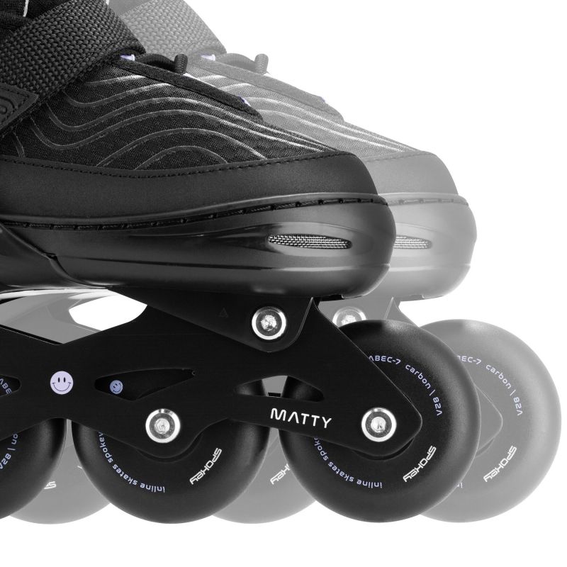 - Sie sind mit Rädern aus mattiertem Polyurethan (PU) ausgestattet und mit bunten Schnürsenkeln und Griffen mit TIE-DYE-Aufdruck verziert.