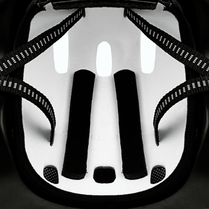 - Das Innere besteht aus EPS-Schaum, der bei einem Sturz Vibrationen und Stöße absorbiert.