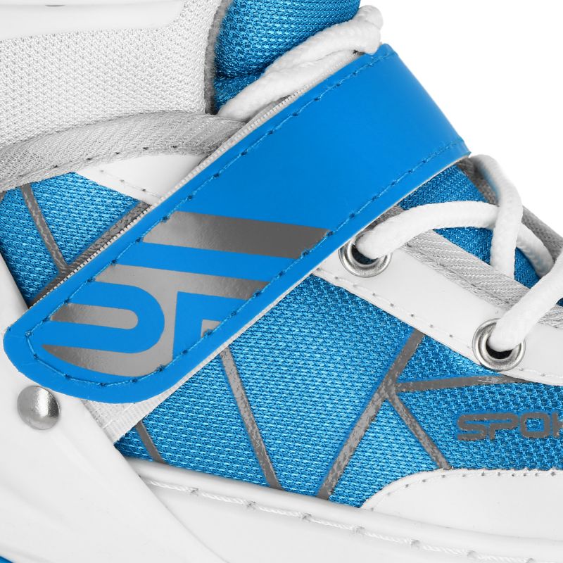 - Spokey TONY Kinder-Rollschuhe: Sie haben eine verstellbare Größe, sodass sie mit Ihrem Kind mitwachsen und sich leicht an Ihren Fuß anpassen. Sie wurden speziell für die jüngsten Rollschuh-Enthusiasten entwickelt. Sie sind mit einem dreifachen Befestigungssystem (Schnürsenkel, Klettverschluss und eine zweiteilige Schnalle) ausgestattet, das maximale Sicherheit beim Rollschuhlaufen gewährleistet.
