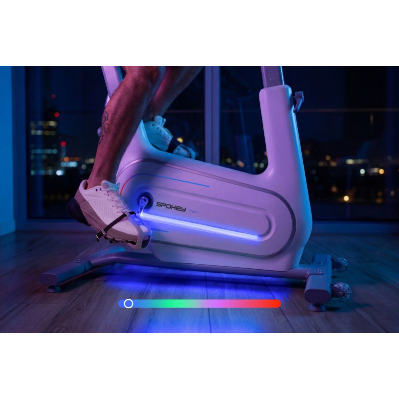 Spokey ZEN Elektromagnetisches Heimtrainer-Fahrrad. Ein modernes elektromagnetisches Heimtrainer-Fahrrad mit 32 Widerstandsstufen, tempoabhängiger LED-Hintergrundbeleuchtung und Bluetooth-Konnektivität für das Training mit den Apps Kinomap und Zwift. Komfortabel und präzise auf den Benutzer einstellbar – perfekt für das tägliche Training. Einführung: Suchen Sie ein Heimtrainer-Fahrrad, das modernes Design mit fortschrittlicher Funktionalität vereint? Das Spokey ZEN ist ein elektromagnetisches Heimtrainer-Fahrrad, das selbst für die anspruchsvollsten Nutzer entwickelt wurde. Es bietet einen sehr großen Widerstandsbereich von 32 Stufen, sodass Sie die Trainingsintensität an jedes Fitnesslevel anpassen können. Verstellbarer Lenker und Sattel ermöglichen die perfekte Anpassung an Ihre Körpergröße. Bluetooth-Funktionalität, Kompatibilität mit den Apps Kinomap und Zwift sowie die tempoabhängige LED-Hintergrundbeleuchtung machen das Spokey ZEN zu einem effektiven und motivierenden Trainingserlebnis in den eigenen vier Wänden. Warum sollten Sie das Spokey ZEN Heimtrainer-Fahrrad ausprobieren? Großer Widerstandsbereich – bis zu 32 Stufen. Das fortschrittliche elektromagnetische System sorgt für einen sanften und leisen Betrieb sowie vielfältige Einstellmöglichkeiten. So können Sie die Intensität Ihres Trainings ganz einfach an Ihre Ziele und Ihr Trainingsniveau anpassen – von sanftem Cardio bis hin zu anspruchsvollen Intervallen. Farbwechselnde LED-Hintergrundbeleuchtung: Das Spokey ZEN Bike ist mit einer futuristischen LED-Beleuchtung ausgestattet, deren Farben je nach Geschwindigkeit sanft von Blau über Grün und Lila zu Rot wechseln. Das ist nicht nur ein echter Hingucker, sondern auch ein motivierender Faktor für Ihr Training. Lenker- und Sattelverstellung: Dank der 8-stufigen Lenkerverstellung und der Möglichkeit, den Sattel vertikal und horizontal zu verstellen, passt sich das Bike optimal an Ihre Körpergröße und Vorlieben an. Ergonomie ist ein wichtiger Faktor für ein komfortables und effektives Training. Pulsmessung und integrierte Sensoren: Sensoren am Lenker ermöglichen die kontinuierliche Überwachung Ihrer Herzfrequenz. Ideal für alle, die in Herzfrequenzzonen trainieren oder die Intensität ihres Trainings kontrollieren möchten. Trainings-Apps und Bluetooth: Das ZEN Bike ist mit den Apps Kinomap und Zwift kompatibel. So können Sie unter realistischen Bedingungen trainieren, Ihre Fortschritte verfolgen und Ihre Motivation während jeder Trainingseinheit steigern. Alles bequem per Bluetooth-Verbindung. Transport und Aufbewahrung: Dank der Transportrollen lässt sich das Bike nach dem Training mühelos bewegen. Detaillierte Beschreibung: Das ZEN Bike ist mit einem modernen elektromagnetischen Antrieb ausgestattet, der eine präzise Widerstandssteuerung in 32 Stufen ermöglicht. So gelingt der nahtlose Übergang von leichtem Cardio-Training zu intensiven Intervalleinheiten. Die LED-Beleuchtung, deren Farbe sich je nach Trainingsintensität ändert, macht jedes Workout dynamisch und optisch ansprechend. Lenker und Sattel lassen sich in zwei Ebenen verstellen, um optimalen Fahrkomfort und Ergonomie unabhängig von Ihrer Körpergröße oder Ihren Vorlieben zu gewährleisten. Dank des integrierten Bluetooth-Moduls ist das Bike mit den Apps Kinomap und Zwift kompatibel. So können Sie Ihr Training mit virtuellen Strecken, Wettbewerben oder auf Ihre Ziele zugeschnittenen Programmen bereichern. Technische Daten Typ: Elektromagnetisches Heimtrainer-Fahrrad Widerstandsart: Elektromagnetisch (Motorantrieb) Widerstandsbereich: 32 Stufen Schwungrad: 6 kg, bidirektional Displayfunktionen: Zeit, Geschwindigkeit, Distanz, Kalorien, Puls, Umdrehungen pro Minute, Widerstand, SCAN-Modus Bluetooth: Ja App-Kompatibilität: Kinomap, Zwift LED-Hintergrundbeleuchtung: Farbwechsel je nach Geschwindigkeit Lenkerverstellung: Vertikal, 8 Stufen Sattelverstellung: Vertikal und horizontal Abmessungen: 101 × 51 × 165 cm Gerätegewicht: 28 kg Maximales Benutzergewicht: 120 kg Stromversorgung: Elektrisch Transportrollen: Ja Zertifikate, Normen und Warnhinweise Entspricht den EU-Sicherheitsstandards. Das Produkt ist nur für den Heimgebrauch bestimmt. Das Gerät ist nicht für Kinder geeignet. Gebrauch und Pflege Lesen Sie die Bedienungsanleitung vor der ersten Benutzung. Trainieren Sie mit geeigneten Sportschuhen. Reinigen Sie das Gerät nach jedem Training mit einem feuchten Tuch. Vermeiden Sie den Kontakt mit Wasser und bewahren Sie das Gerät an einem trockenen Ort auf. Überprüfen Sie regelmäßig den festen Sitz der Schrauben und die Stabilität der Komponenten. Verwenden Sie keine Reinigungsmittel, die Alkohol oder Aceton enthalten. Ziehen Sie den Netzstecker, wenn Sie das Gerät längere Zeit nicht benutzen. Häufig gestellte Fragen: Was sind die Vorteile des elektromagnetischen Widerstandssystems? Das elektromagnetische Widerstandssystem sorgt für einen besonders sanften, leisen und präzisen Betrieb. Mit 32 Widerstandsstufen können Sie die Intensität Ihres Trainings perfekt an Ihr Fitnesslevel anpassen – vom leichten Einstieg bis zur intensiven Belastung. Im Gegensatz zu herkömmlichen Heimtrainern bietet der ZEN einen größeren Einstellbereich und reagiert schneller auf Änderungen der Einstellungen.