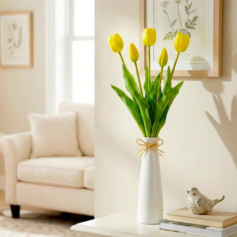 Wählen Sie eine Dekoration, die stets frisch und elegant wirkt. Dieser Strauß aus 5 gelben Tulpen (39 cm) ist eine naturgetreue Frühlingsdekoration. Er verleiht jedem Raum auf einfache Weise eine fröhliche Note – ganz ohne Kompromisse.