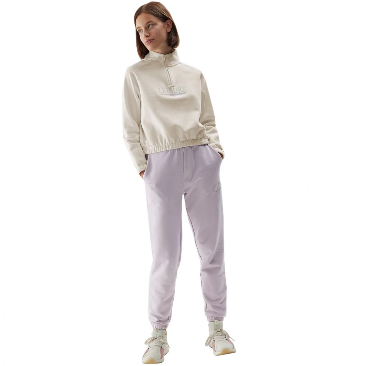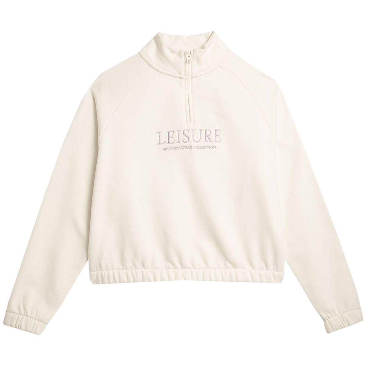 Damen 4F F0718 Creme Sweatshirt 4FAW23TSWSF0718 12S Dieses Damen-Sweatshirt ist perfekt für den Alltag. Isoliert. Wird über den Kopf gezogen. Keine Kapuze. Stehkragen mit kurzem Reißverschluss. Gestickter Schriftzug „Leisure 4F Sportswear Collection“ auf der Vorderseite. Raglanärmel ermöglichen Bewegungsfreiheit. Elastischer Saum und Bündchen. Weiches Material mit hohem Baumwollanteil für täglichen Tragekomfort. Hauptmaterial: 78 % Baumwolle, 12 % Polyester. Futter: 100 % Baumwolle.