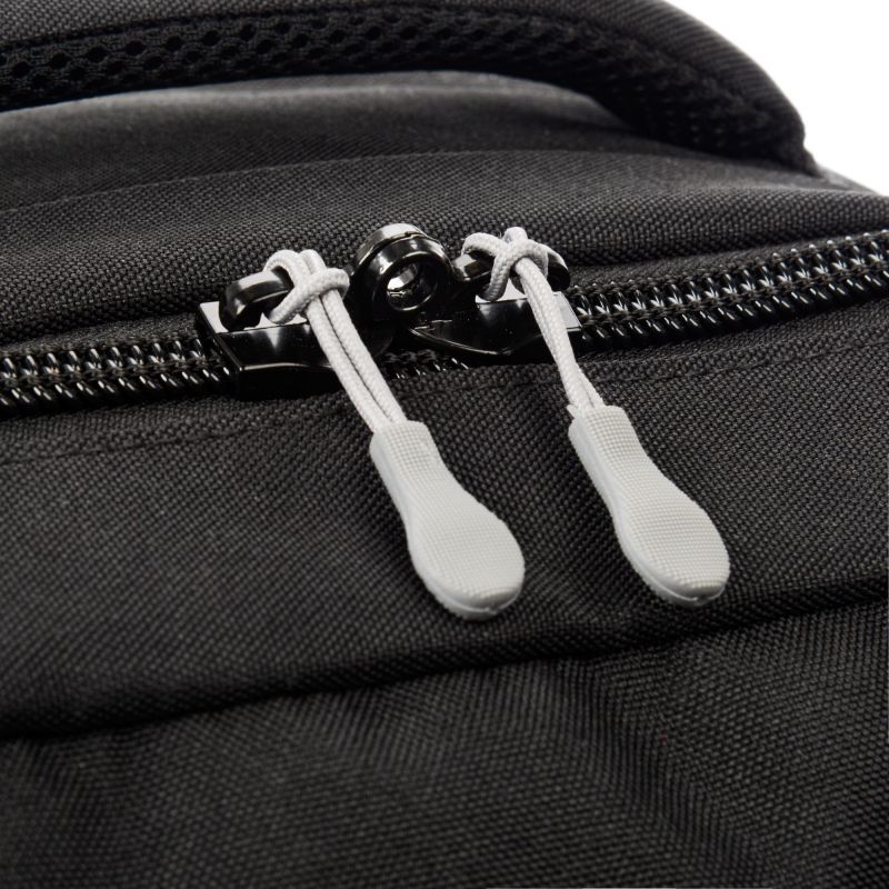 Der SwissBags Cointrin Rucksack verfügt über eine spezielle seitliche Netztasche für Getränke, die unterwegs einen einfachen Zugriff ermöglicht. Zwei Reißverschlusstaschen vorne bieten Stauraum für kleine Gegenstände, die Sie griffbereit haben müssen. Im Inneren befinden sich zwei weitere Reißverschlusstaschen, eine davon aus Netzgewebe, und ein separates Fach, ideal für ein Tablet oder andere elektronische Geräte.