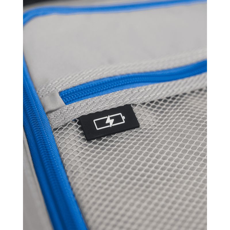 - Der Koffer ist mit einem USB-Anschluss ausgestattet, dank dem wir mobile Geräte an die Powerbank anschließen können.