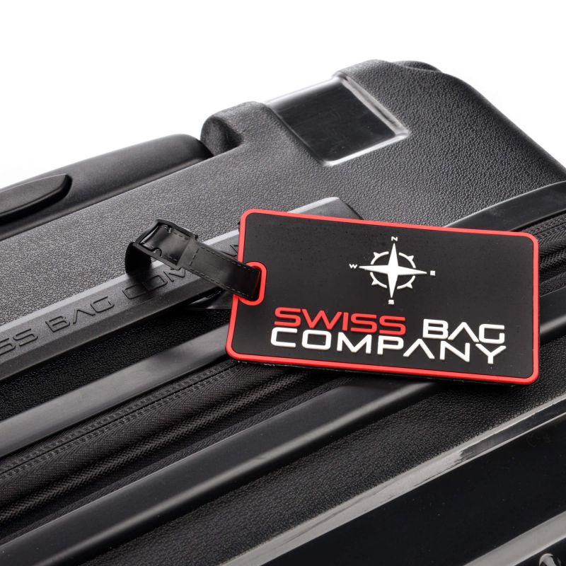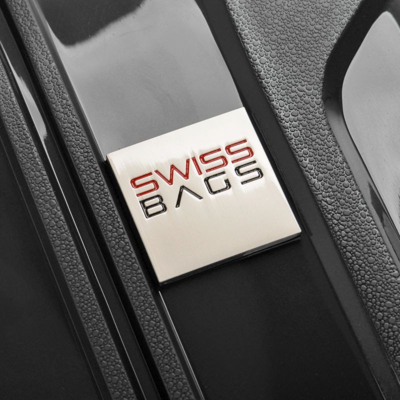 - Auf der Vorderseite des Koffers befindet sich eine Originalaufschrift mit dem Markennamen.
