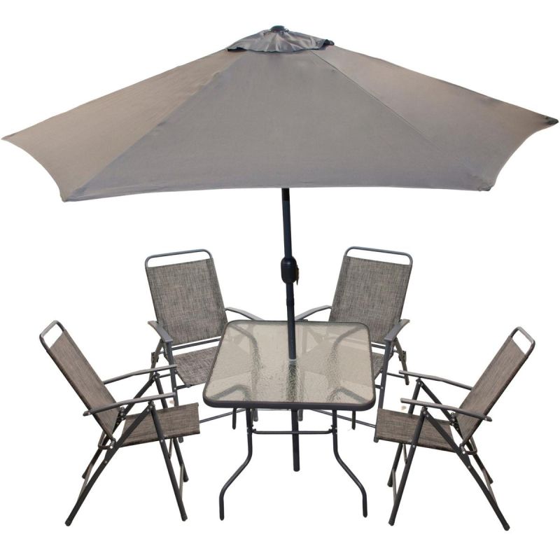 SYDNEY GARTENMÖBEL-SET, TISCH, 4 STÜHLE UND SCHIRM, GRAU