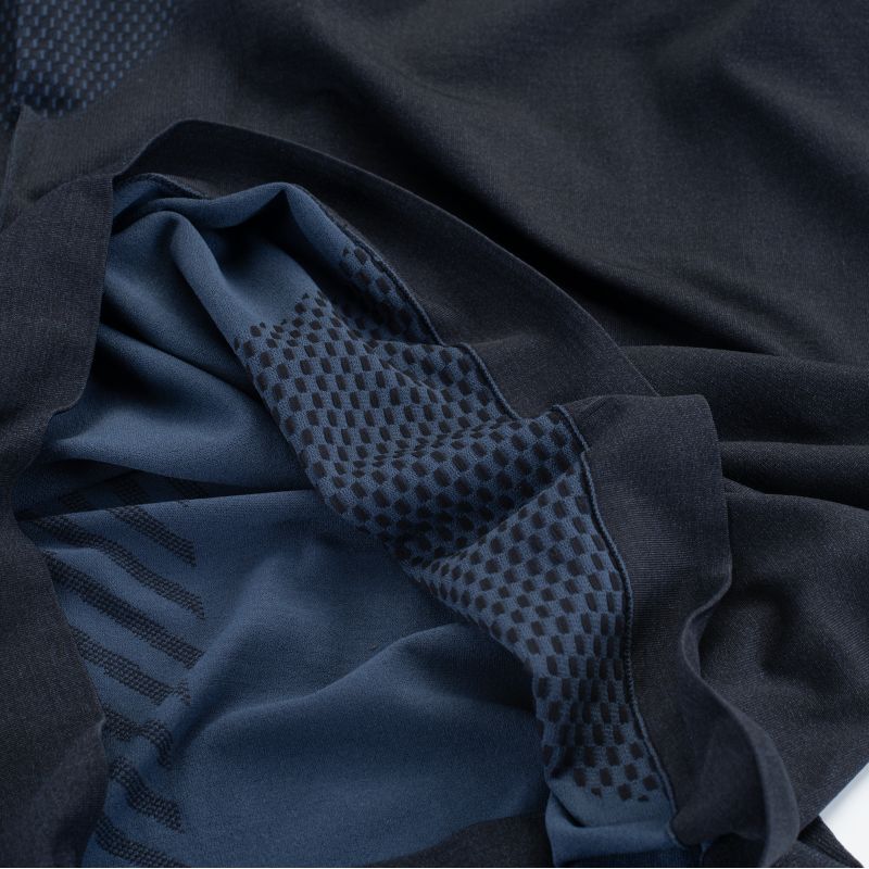 Trainingsshirt, Größen: S-XL, Materialzusammensetzung: 55 % Nylon, 45 % Polyester, Eigenschaften: Atmungsaktiv, Schnelltrocknend, Nahtlos, Reflektierende Elemente, Elastisches 4-Wege-Stretchmaterial