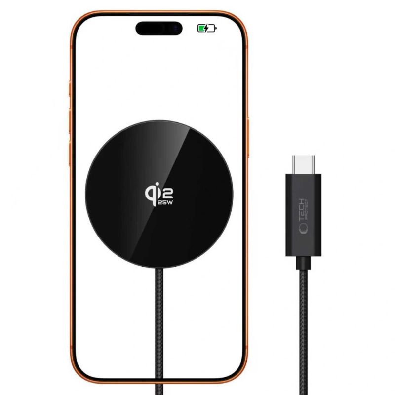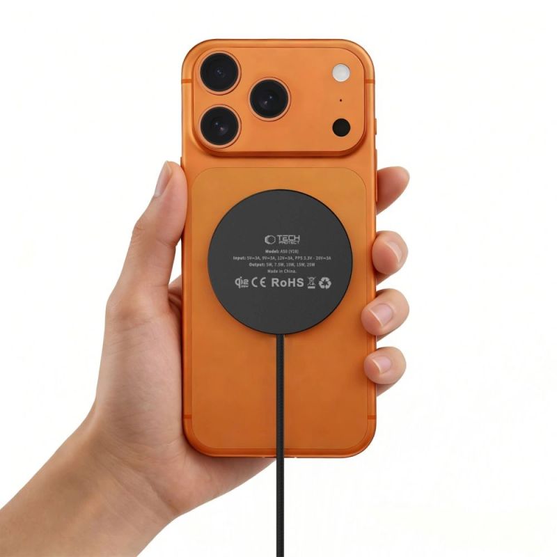 Das Tech-Protect A50 ist ein kompaktes induktives Ladegerät mit magnetischer MagSafe-Halterung, das den neuesten Qi2.2-Standard mit einer maximalen Ausgangsleistung von 25 W unterstützt. Integrierte Magnete sorgen jedes Mal für einen präzisen Sitz am Smartphone und gewährleisten so eine stabile Verbindung und optimale Ladeleistung ohne lästiges Positionieren des Geräts.