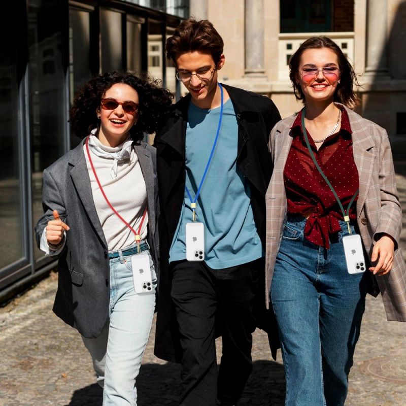 Ausgestattet mit einem Adapter, der an der Innenseite der Hülle angebracht wird, ermöglicht es Ihnen, das Telefon sicher und bequem zu tragen. Dank der verstellbaren Schnurlänge können wir das Telefon über die Schulter hängen oder in der Hand tragen und so die Art der Nutzung an unsere Bedürfnisse anpassen.