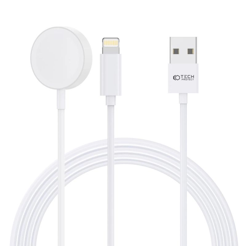 Tech-Protect UltraBoost 2in1 magnetisches Ladegerät mit USB-C/ Lightning -Kabeln für Apple Watch 1,5 m – Weiß