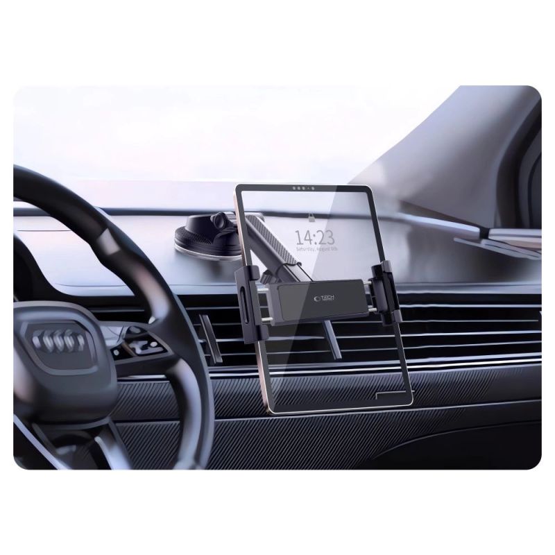 Tech-Protect V4 ist eine innovative Autohalterung für Tablets, die für die Montage im Cockpit des Fahrzeugs konzipiert ist. Ausgestattet mit einem soliden Klemmmechanismus mit Anti-Rutsch-Pads aus Silikon hält er Geräte von 141 bis 280 mm Breite sicher fest.