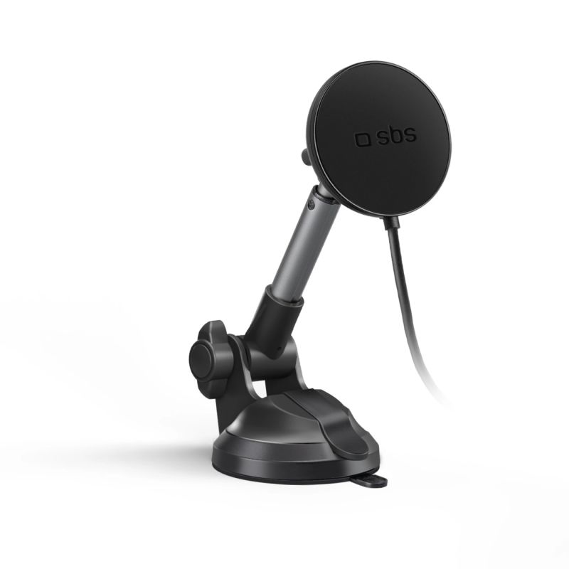 Teleskop-Smartphone-Halterung mit SBS TESUPPMAG15WLONGARM Induktionsladegerät mit Saugnapf, kompatibel mit MagSafe – Schwarz