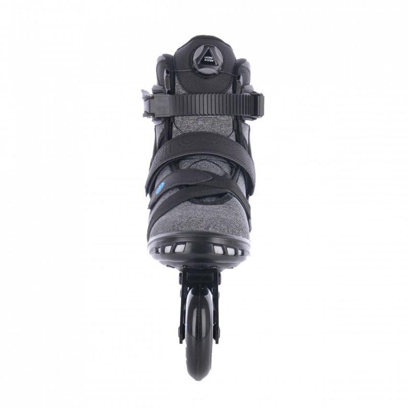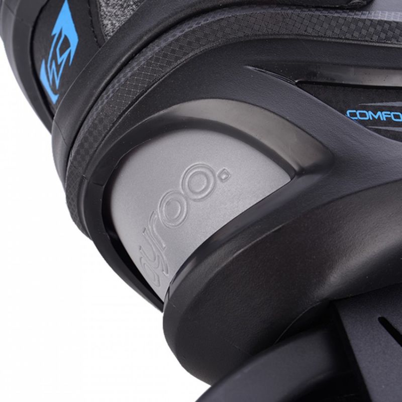 - Durch Festziehen des Ristriemens und der oberen Kragenschnalle des Skates kann jeder Benutzer die optimale Fußposition im Rahmen einstellen, um eine perfekte und bequeme Kontrolle des Skates zu gewährleisten.