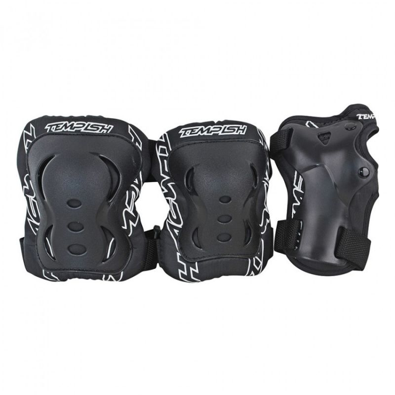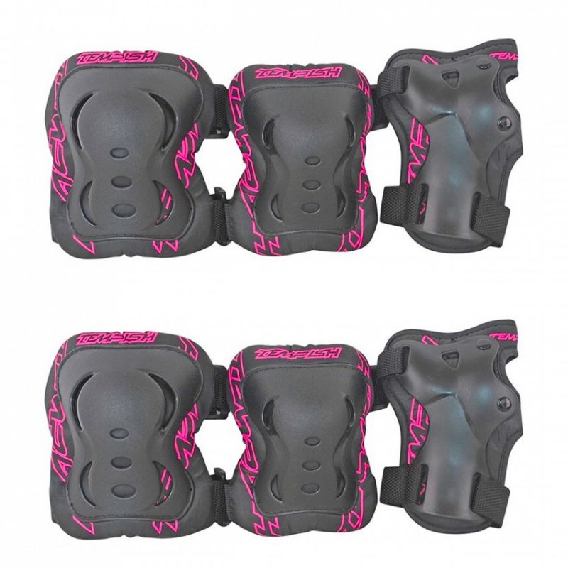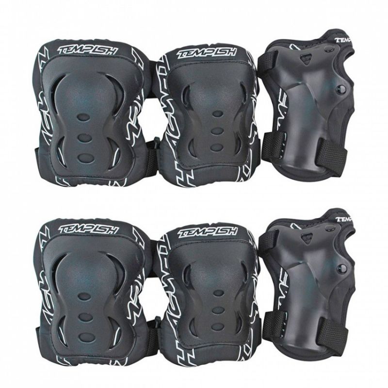 - Ein bequemes Protektorenset: Knie, Ellbogen, Handgelenke