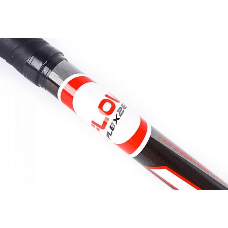 - Hergestellt aus Fiberglas, besteht er aus mehreren Schichten, was ihm sehr gute Eigenschaften in Bezug auf Flexibilität und Haltbarkeit verleiht. Er ist mittelhart, flexibel (Flex 28 mm). Das Stockprofil ist klassisch, abgerundet und verjüngt sich zur Klinge hin.