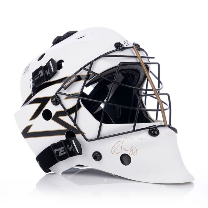 Die TEMPISH Class Floorball Goalie Mask ist eine moderne und professionelle Floorball-Torwartmaske, der Nachfolger des beliebten Modells HERO ACTIV. Ihr dynamisches Design ist auf aktive Bewegungen im Torraum ausgelegt und bietet vollständige Bewegungsfreiheit und hervorragenden Schutz. Die Maske besteht aus strapazierfähigem ABS-Kunststoff und ist somit die ideale Wahl für Profis und ambitionierte Spieler. Hauptmerkmale: ABS-Material: Hochwertiger ABS-Kunststoff gewährleistet Langlebigkeit und höchste Sicherheit. IFF-zertifiziert: Die Maske ist von der International Floorball Federation (IFF) zertifiziert, was ihre Konformität mit professionellen Wettkampfstandards bestätigt. Anatomische Polsterung: Ausgestattet mit einem verstellbaren Kinnschutz aus PE-Material für eine perfekte Passform. CoolMax-Einsatz: Ein saugfähiger CoolMax-Gurt leitet Schweiß ab und sorgt so für Komfort beim Spiel. Belüftung: Sorgfältig platzierte Belüftungslöcher erhöhen die Luftzirkulation und den Tragekomfort. Schutznetz: Hochwertiges Stahlnetz schützt Gesicht und Augen und bietet gleichzeitig hervorragende Sicht. Nackenschutz: Der verlängerte Kinnriemen bietet zusätzlichen Schutz für den Nacken. Verstellbare Riemen: Die Maske verfügt über elastische Riemen mit Gummienden für eine einfache Anpassung und eine perfekte Passform. Die TEMPISH Class ist eine ausgezeichnete Wahl für jeden Unihockey-Torwart, der zuverlässigen Schutz, Komfort und eine perfekte Passform für dynamisches Spiel sucht.