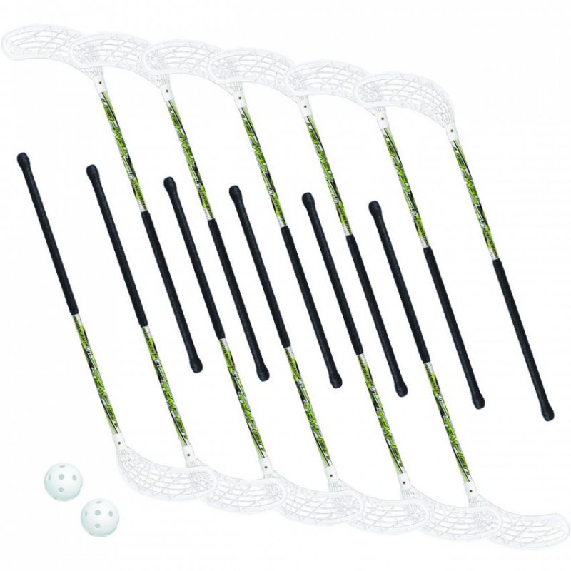 TEMPISH Ghastly 2 Jr Floorballschläger-Set. Dieses Floorballschläger-Set ist für Anfänger konzipiert. Das Set enthält 12 Floorballschläger (8 x L + 4 x R) + 2 Trainingsbälle. Dies ist der perfekte Floorballschläger für die Kleinsten, die diesen beliebten Sport ausprobieren möchten. Dieser Floorballschläger erfüllt die Bedürfnisse dieser jungen Anfänger; er ist sehr weich, was bei den ersten Trainingseinheiten oder beim Spielen mit anderen Spielern sehr nützlich ist. Kinder lernen, den Ball zu führen und zu kontrollieren, zu schießen und zu passen. Der rutschfeste Griff sorgt für sicheren Halt in der geschlossenen Faust. Der kleinere Schaftdurchmesser (18,3 mm ohne Griff, 22 cm mit Griff) ist an kleine Kinderhände angepasst. Der Schaft ist mit einer Spitze für besseren Halt und mehr Sicherheit ausgestattet. TECHNISCHE PARAMETER Verwendungszweck Floorball, für Kinder Länge 75 cm Härte (Flex) - Material Verbundwerkstoff Technologien - Griffform Rund Klinge - Klingenhärte Weich Rutschfester Griff IFF-Zertifikat - Gewicht -