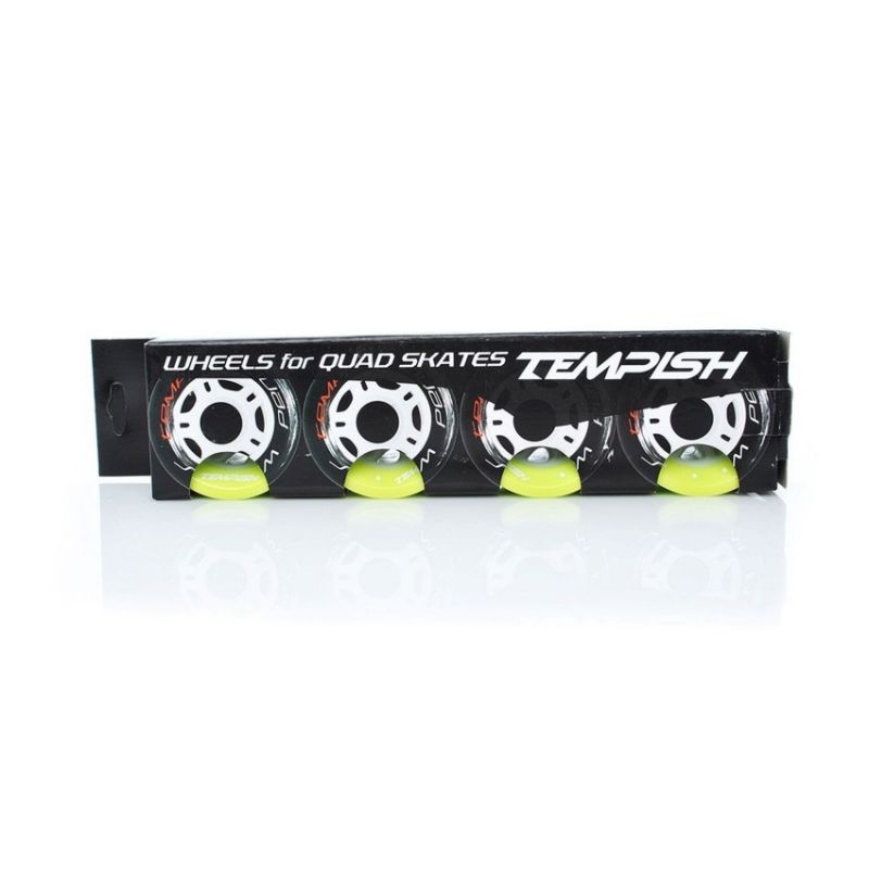Ein Satz von vier Quad-Rollschuhrollen mit verlängerter Haltbarkeit und geringem Rollwiderstand. Diese Serie eignet sich zum Skaten auf glatten Oberflächen. Farbe: grün. Anwendung: Freizeitsport. Durchmesser: 57 mm. Härte: 93 A. Anzahl der Rollen im Satz: 4.