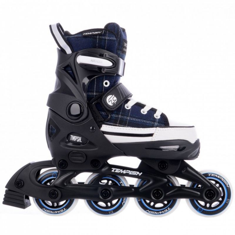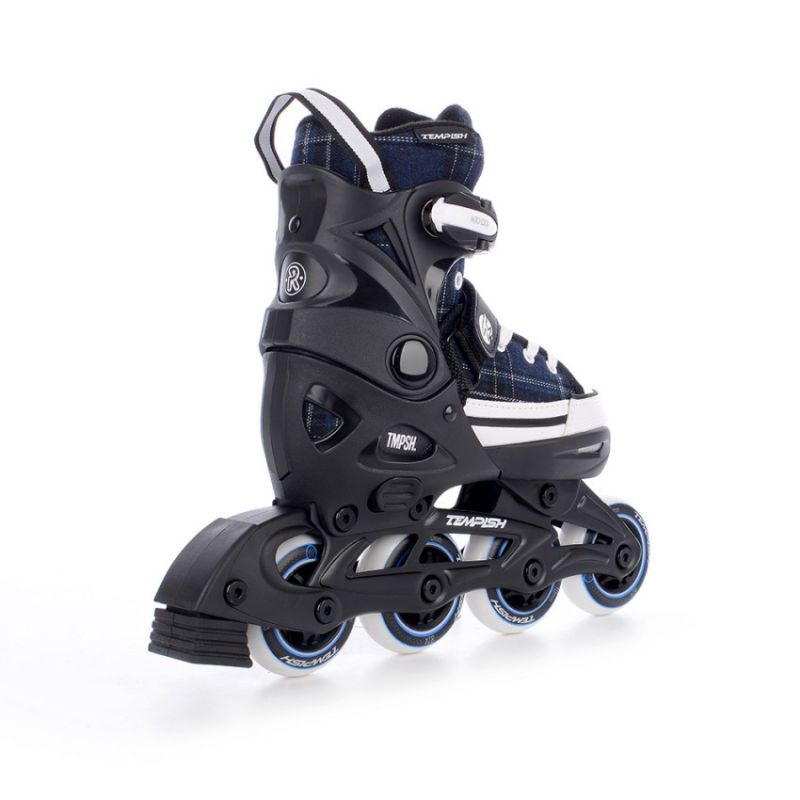 Tempish Rebel T verstellbare Inlineskates Hochwertige verstellbare Kinder-Inlineskates zum Freizeitskaten für Anfänger und Fortgeschrittene. Dieses Modell verfügt über ein einfaches und bequemes Vergrößerungssystem mithilfe eines Knopfes an der Seite des Rahmens, dank dem die Skates in 4 Größen eingestellt werden können. TECHNISCHE PARAMETER Verwendungszweck Freizeit- und Fitnessskaten (Konditionsskaten), mittlere bis schwere Belastungen, für Anfänger und Fortgeschrittene Chassis Spannungsfreie AL-Legierung, 2-teilige, 3D-geprägte Konstruktion. Radgröße Größe 29–32: 64 mm Räder Größe 33–36: 70 mm Räder Größe 37–40: 72 mm Räder Größe 40–43: 76 mm Räder Radhärte 82A Lager 608, ABEC 7 Schnürsystem Schnürsenkeltyp | Schuhschale: Abriebfest, PP/NYLON, 2-teilig, weich. Liner (Innensohle): Versteiftes NYLON/CANVAS, anatomisch, verstärkt mit PVC-Elementen. Größenverstellbar. Bremse inklusive. Oberer Verschluss. Schnalle. 45-Grad-Verschluss. Klettverschluss. Achsen - Gewichtsgrenze: 60 kg