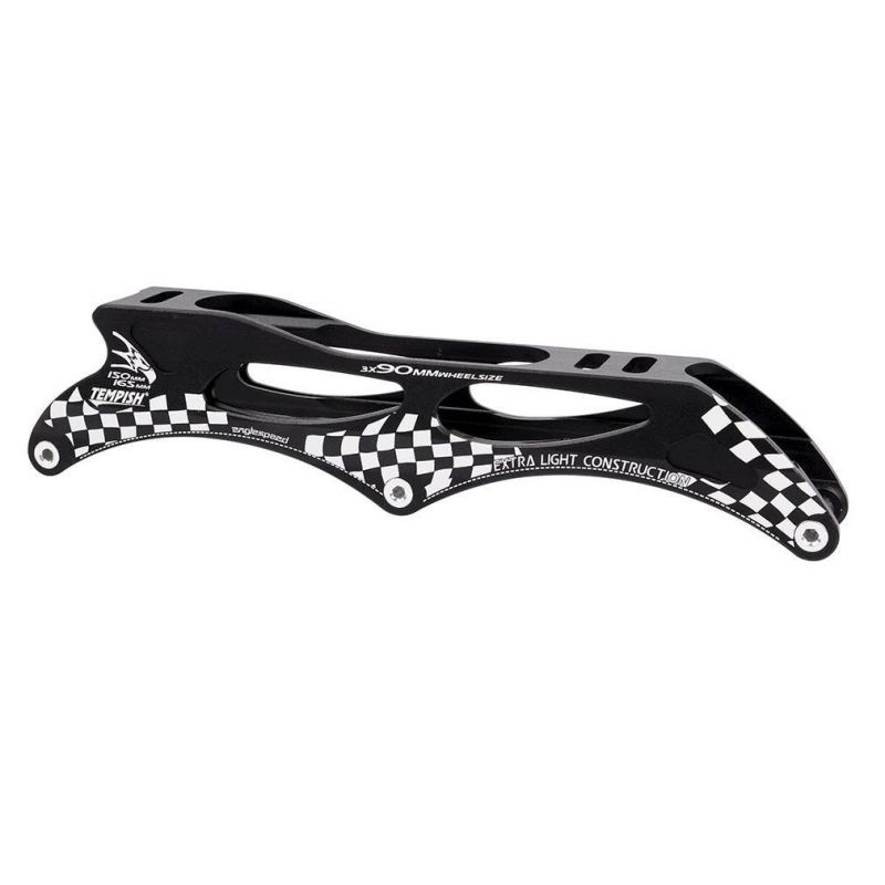 Tempish Chassis Schell 3-Rahmen mit drei 90/100/110-mm-Rollen, Lochabstand: 150–165 mm. SCHELL-Rahmen sind sehr robust und leicht zu steuern. Hergestellt aus AL 7000-Legierung. Hauptmerkmale: Einsatzzweck: Speed-Inline-Skating für fortgeschrittene, erfahrene Skater. Leichter Monolith-Rahmen, 3D-Konstruktion, spezielle Duraluminiumlegierung, feste Mittelposition mit verstellbaren Schrauben, HI-POLISH ALUX-Oberflächenfinish.
