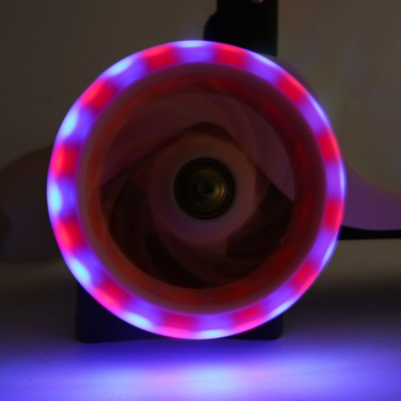 - Die Vorder- und Hinterräder sind mit mehrfarbigen LED-Leuchten beleuchtet.