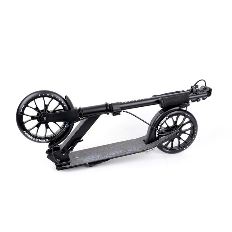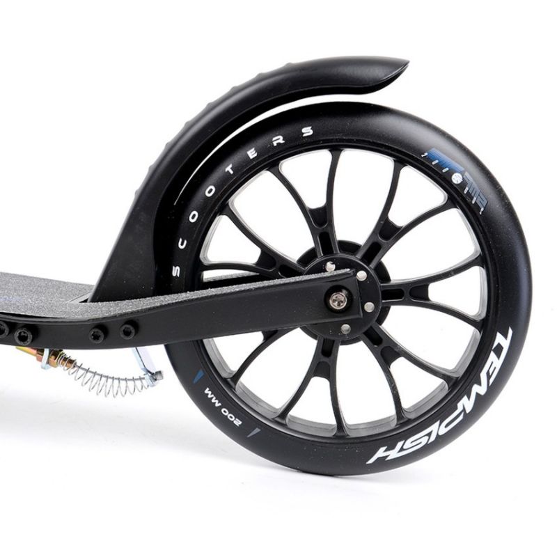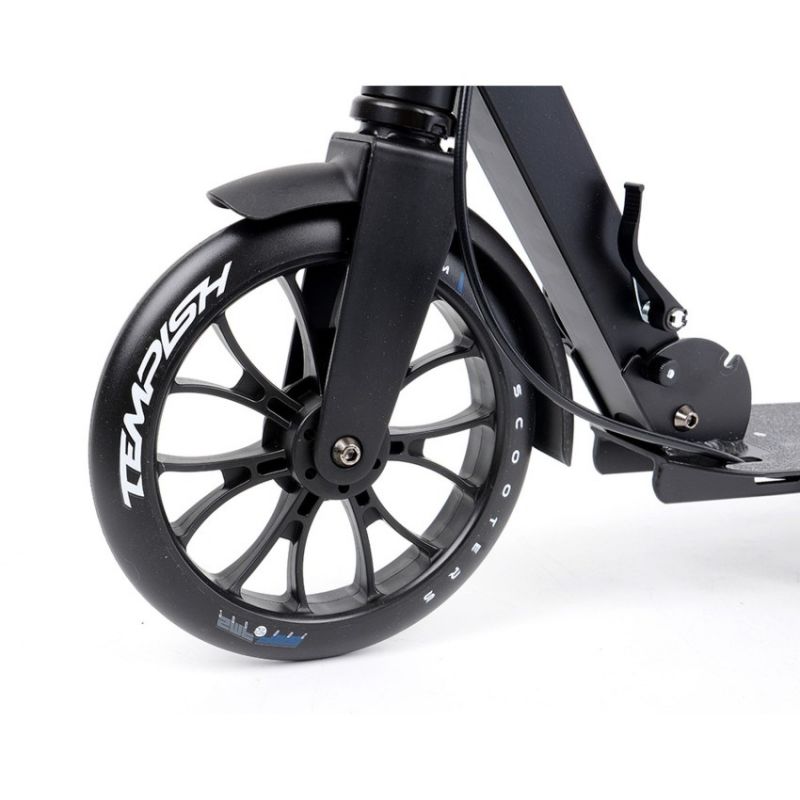 TEMPISH SMF 200 R Scooter Der TEMPISH SMF 200 R ist ein robuster und komfortabler City-Scooter, ideal für Jugendliche und Erwachsene. Sein Design vereint Funktionalität mit Komfort, wodurch er sich perfekt für den Weg zur Schule oder Arbeit sowie für Freizeitfahrten eignet. Hauptmerkmale: Fortschrittliches Bremssystem: Ausgestattet mit einer handbetätigten Hinterradbremse, die über einen Hebel am Lenker gesteuert wird, und einer klassischen Fußbremse in Form eines Schutzblechs für zusätzliche Sicherheit. Stabiles und faltbares Design: Ein praktisches Faltsystem mit großer Klemme und klappbarem Ständer ermöglicht einfaches Verstauen und Transportieren des Scooters. Verstellbarer Lenker und bequeme Griffe: Der Schnellspanner-Lenker ermöglicht die Höhenverstellung an die Körpergröße des Benutzers, während die Schaumstoffgriffe während der Fahrt für bequemen Halt sorgen. Große 200-mm-Räder: Sie bestehen aus strapazierfähigem Polyurethan und sorgen für schnelle und gleichmäßige Bewegung sowie gute Stoßdämpfung auf unebenen Oberflächen. Der TEMPISH SMF 200 R Scooter ist ein vielseitiger Scooter, der Geschwindigkeit, Komfort und Sicherheit vereint und sich perfekt für den täglichen Gebrauch durch Menschen jeden Alters eignet. TECHNISCHE DATEN: Material: Aluminiumlegierung, Räder: 200 mm, Lager: ABEC 5, Bremse: Rechtshänderbetrieb, Lenker: Deluxe 80AB, Achsen: Decklänge: 520 mm, Deckbreite: 115 mm, Lenkerhöhe: 814–894 mm, Gewicht: 4,8 kg, Gewichtsgrenze: 100 kg, Klemme: Aluminium, 2-Schrauben, Lenker: verstellbar, Breite: 350 mm, Steuersatz: Gewinde