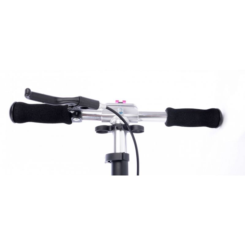 - Die Räder bestehen aus starkem PU und haben eine Breite von 30 mm und einen Durchmesser von 200 mm. Dadurch liegen sie gut auf der Straße, sind schnell, haben eine lange Lebensdauer und absorbieren kleinere Stöße gut.
