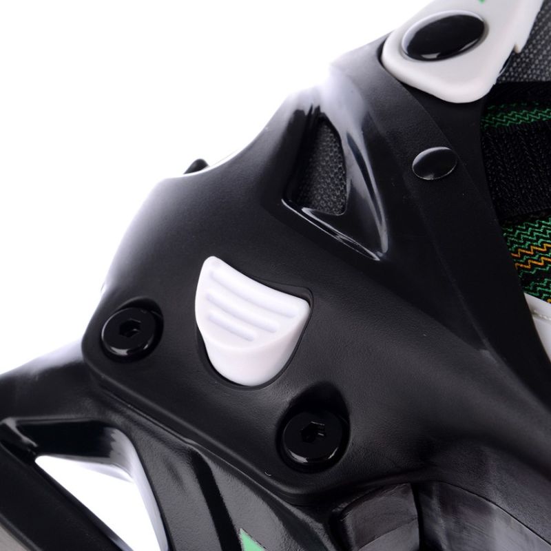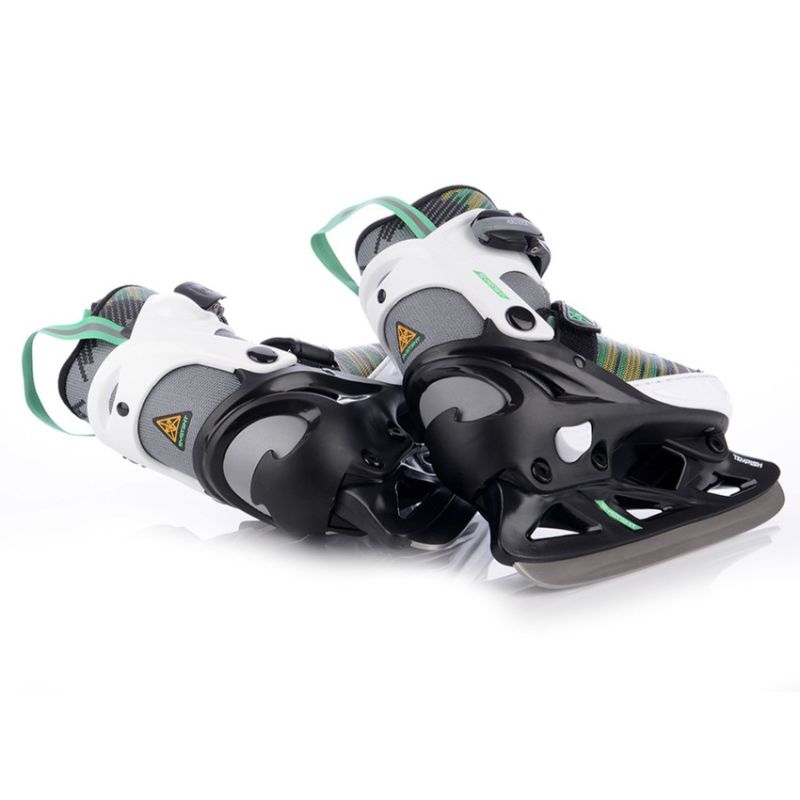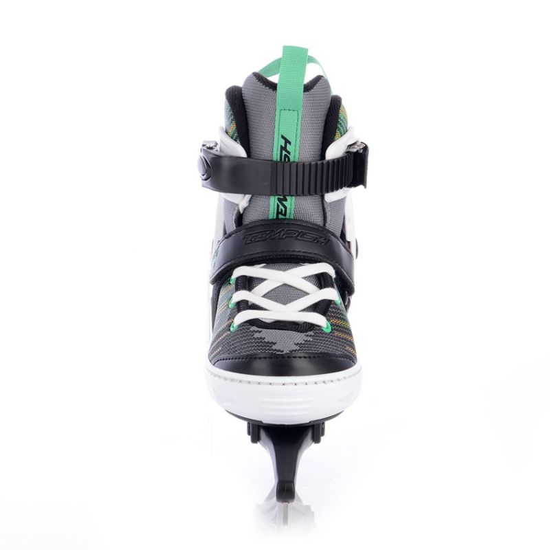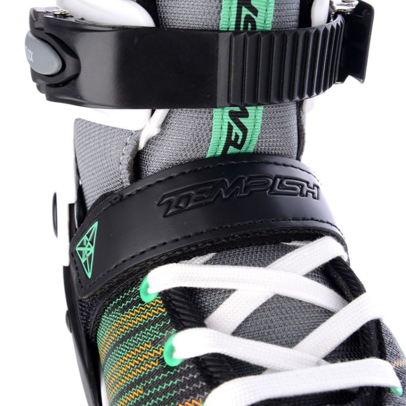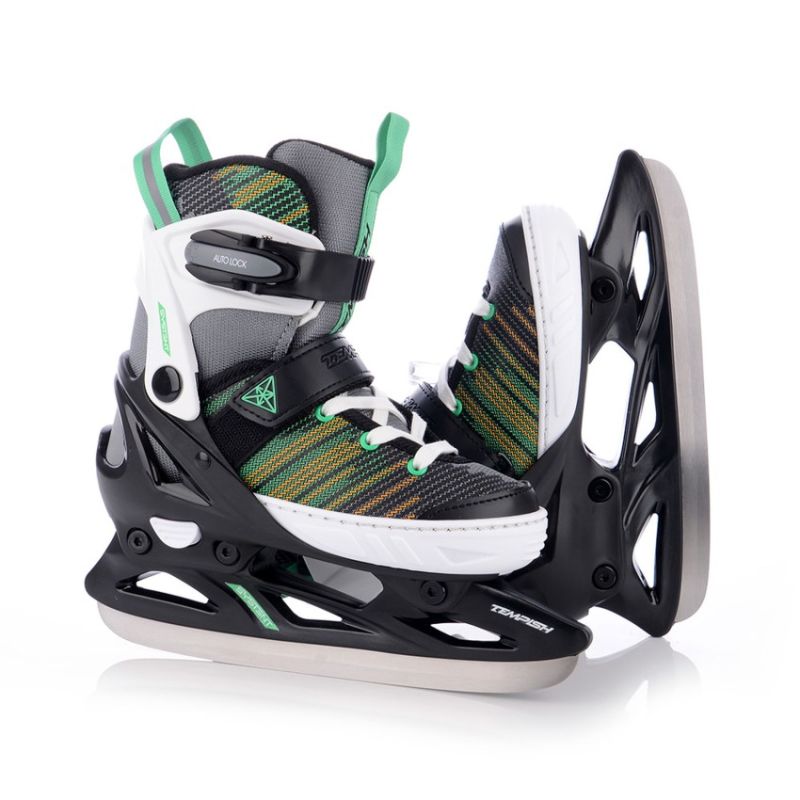 TEMPISH Systent verstellbare Schlittschuhe. Komfort, Sicherheit und Passform für die Kleinsten. TEMPISH Systent Schlittschuhe sind eine ausgezeichnete Wahl für Jungen, die gerade ihr Schlittschuhabenteuer beginnen, sowie für diejenigen, die ihre Fähigkeiten weiterentwickeln möchten. Mit Größenverstellung, einer robusten Konstruktion und einem bequemen Innenfutter sorgen sie für Komfort und Sicherheit bei jeder Fahrt. Hauptmerkmale: Größenverstellung und Benutzerfreundlichkeit: 4-Größen-Verstellsystem mit einem Knopf an der Seite des Rahmens. Zungenschlaufe für einfaches An- und Ausziehen. Komfort und Passform: Weiches, schnell trocknendes Futter für Wärme und Komfort. Anatomisch geformter Innenschuh für sicheren Fußhalt. Sicherheit und Haltbarkeit: Robuster Kunststoffrahmen stabilisiert den Knöchel. Reflektierende Elemente auf der Rückseite erhöhen die Sichtbarkeit bei schlechten Lichtverhältnissen. Temperaturbeständig bis -20 °C. TEMPISH Systent sind verstellbare Schlittschuhe, die für wachsende Kinderfüße entwickelt wurden. Sie vereinen Funktionalität, Sicherheit und Komfort, sodass junge Schlittschuhläufer viele Saisons lang Spaß am Schlittschuhlaufen haben. TECHNISCHE DATEN Einsatzbereich: Freizeitsport Kufe: TEMPISH UNI CARBON Stahl – Edelstahl Außenmaterial: Dreiteiliger Rahmen – TPU (flexibel bis -20°C), weiches Futter, PVC BRILLIANT RESIST, NYLON+NYLEX Innenmaterial: CAMBRA 26Z gebürstetes Nylon mit Innenfutter Verschlusssystem: Schnürsenkel, 1x Schnalle, 1x Klettverschluss Größenverstellung: Ja Gewichtslimit: 60 kg