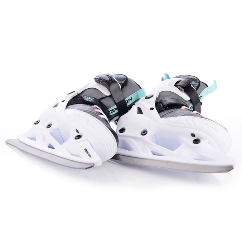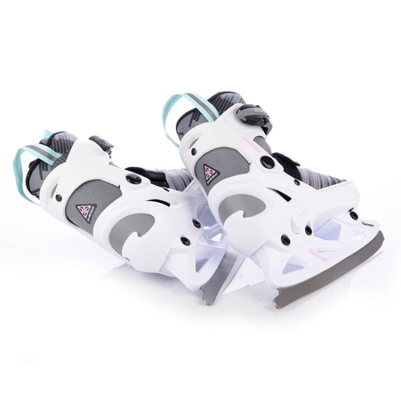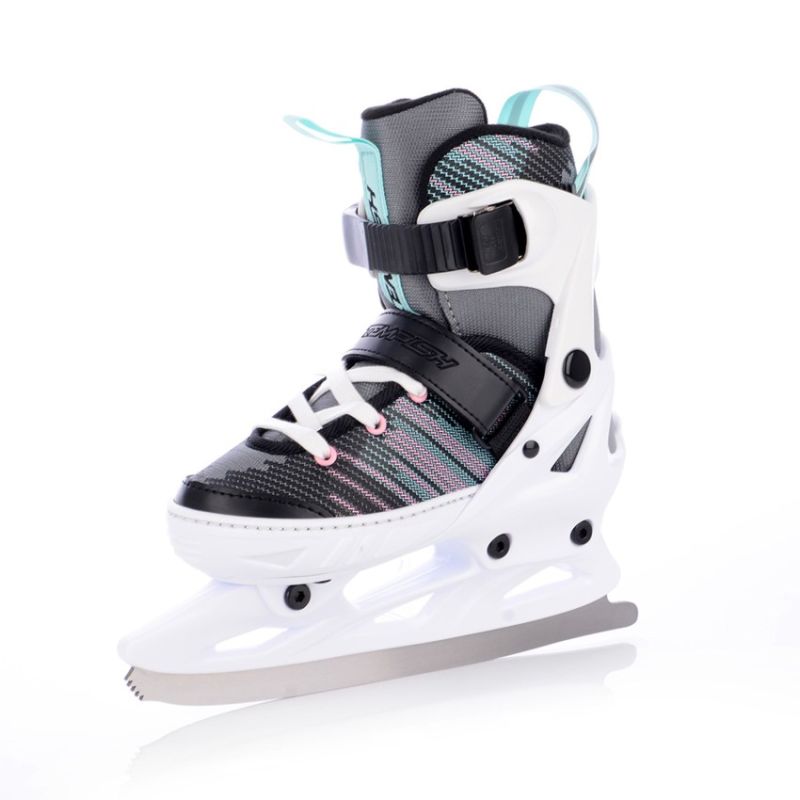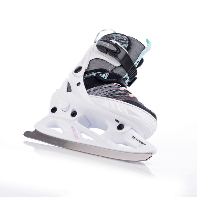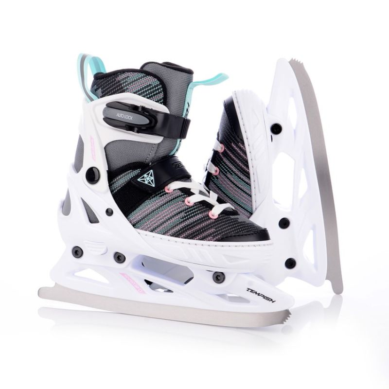 TEMPISH Systent Girl verstellbare Schlittschuhe. Komfort, Sicherheit und Passform für die Kleinsten. TEMPISH Systent Girl Schlittschuhe sind eine ausgezeichnete Wahl für Mädchen, die gerade ihr Schlittschuhabenteuer beginnen, sowie für diejenigen, die ihre Fähigkeiten weiterentwickeln möchten. Mit Größenverstellung, einer robusten Konstruktion und einem bequemen Innenschuh sorgen sie für Komfort und Sicherheit bei jeder Fahrt. Hauptmerkmale: Größenverstellung und Benutzerfreundlichkeit: 4-Größen-Verstellsystem mit einem Knopf an der Seite des Rahmens. Zungenschlaufe für einfaches An- und Ausziehen. Komfort und Passform: Weiches, schnell trocknendes Futter für Wärme und Komfort. Anatomisch geformter Innenschuh für sicheren Fußhalt. Sicherheit und Haltbarkeit: Der robuste Kunststoffrahmen stabilisiert den Knöchel. Reflektierende Elemente auf der Rückseite erhöhen die Sichtbarkeit bei schlechten Lichtverhältnissen. Temperaturbeständig bis -20 °C. TEMPISH Systent Girl sind verstellbare Schlittschuhe, die für wachsende Kinderfüße entwickelt wurden. Sie vereinen Funktionalität, Sicherheit und Komfort, sodass junge Schlittschuhläufer viele Saisons lang Spaß am Schlittschuhlaufen haben. TECHNISCHE DATEN Einsatzbereich: Freizeitsport Kufe: TEMPISH UNI CARBON Stahl – Edelstahl Außenmaterial: Dreiteiliger Rahmen – TPU (flexibel bis -20°C), weiches Futter, PVC BRILLIANT RESIST, NYLON+NYLEX Innenmaterial: CAMBRA 26Z gebürstetes Nylon mit Innenfutter Verschlusssystem: Schnürsenkel, 1x Schnalle, 1x Klettverschluss Größenverstellung: Ja Gewichtslimit: 60 kg