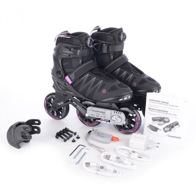 - Das Bremsen dieser Rollschuhe ist jetzt komfortabler, sicherer, einfacher und effizienter als mit der klassischen Bremse hinter dem Hinterrad!