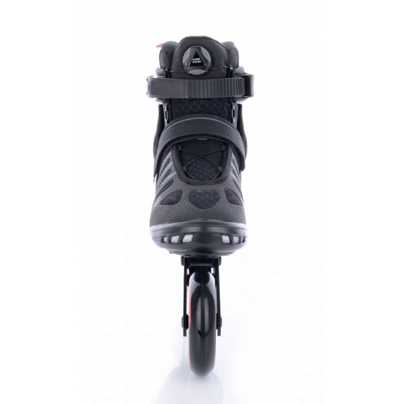 - Durch Festziehen des Spannriemens und der oberen Kragenschnalle kann jeder Benutzer die optimale Fußposition in der Schale für eine perfekte und bequeme Skate-Kontrolle einstellen.