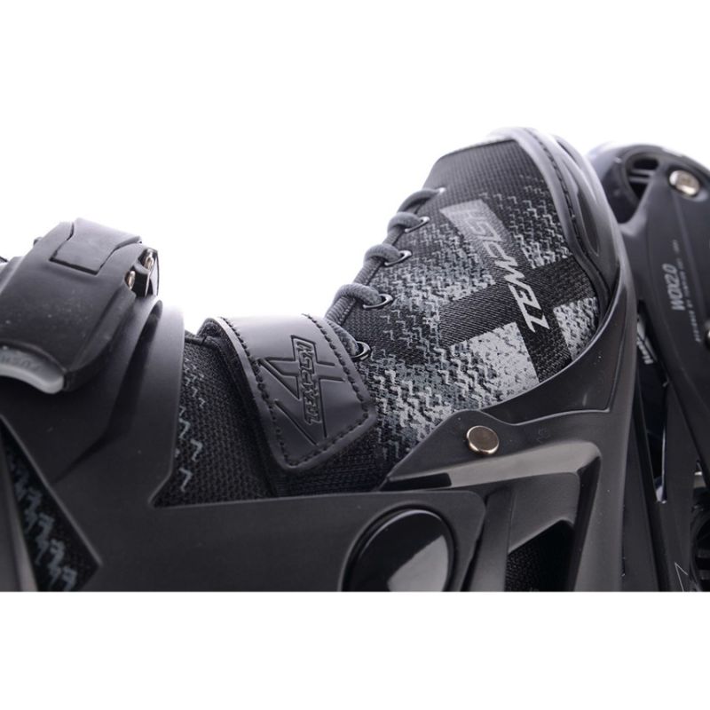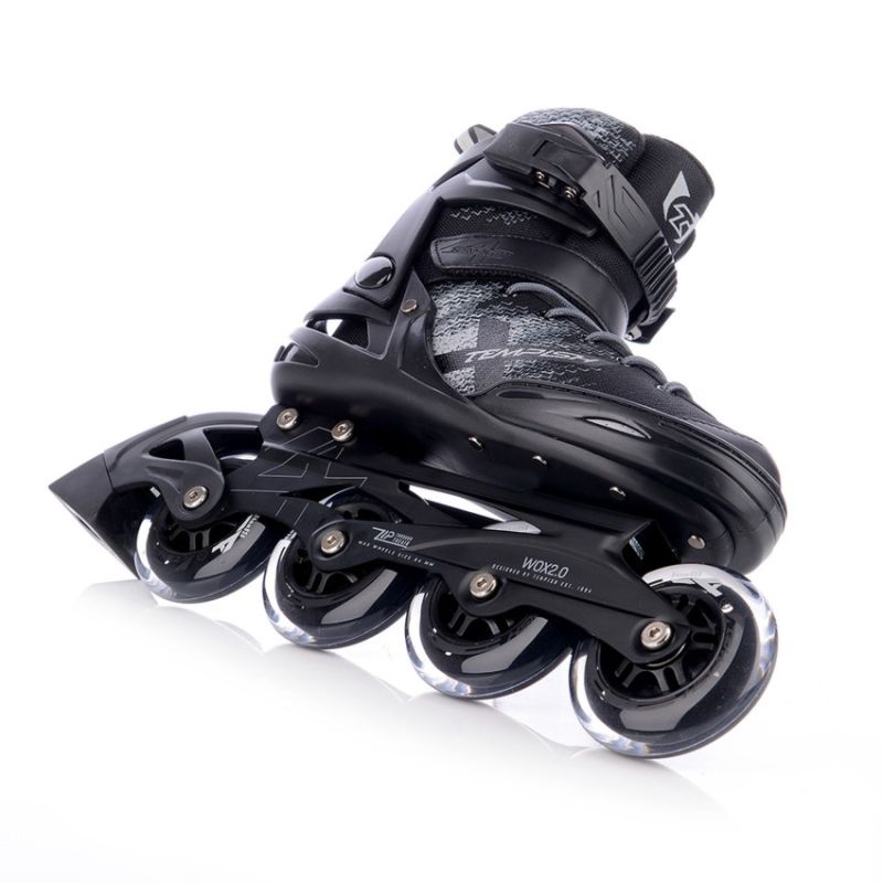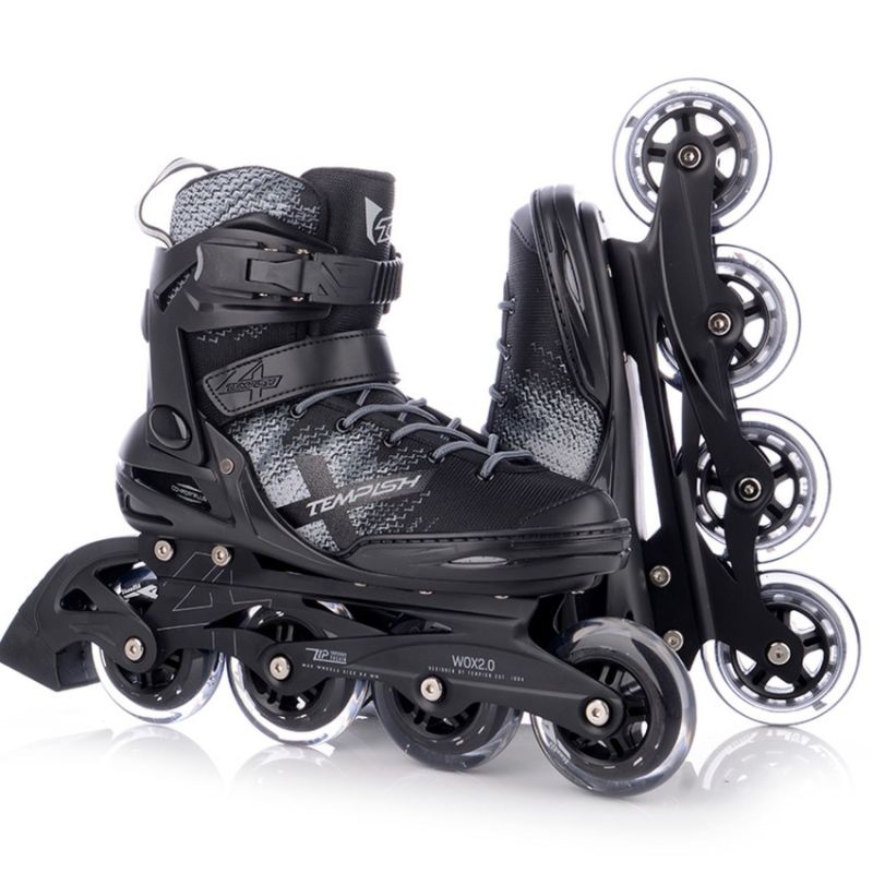 TEMPISH WOX 2.0 Inlineskates: Komfort, Stabilität und Kontrolle für Freizeit-Skating. Die TEMPISH WOX 2.0 Inlineskates basieren auf dem beliebten WOX-Modell und wurden mit kleinen Verbesserungen optimiert, die Komfort und Benutzerfreundlichkeit erhöhen. Sie sind ideal für Freizeit- und Fitness-Skating und die perfekte Wahl für Anfänger und Fortgeschrittene, die Wert auf Zuverlässigkeit, Komfort und gute Kontrolle legen. Die mittelhohe Schale bietet festen Halt und eine stabile Spurführung. Der doppellagige Innenschuh mit komfortabler Polsterung garantiert eine gute Passform und optimale Knöchelunterstützung. Bei der Version 2.0 ist der Innenschuh fest mit der Schale verbunden, was die Stabilität und den Gesamtkomfort beim Skaten erhöht. Hauptmerkmale: Stabile Schalenkonstruktion: Die mittelhohe Konstruktion bietet guten Halt und Kontrolle. Doppellagiger Innenschuh: Komfortable Polsterung und feste Verbindung mit der Schale für mehr Stabilität. Einfacher Einstieg: Praktische Schlaufe für mehr Komfort. Verschlusssystem: Klassische Schnürung, ein Klettverschluss über dem Spann und eine Schnalle am Schaft für sicheren Halt. CATCH 84-mm-Rollen: Langlebig und verschleißfest, ideal für Radwege, Parks und urbane Asphaltflächen. Die TEMPISH WOX 2.0 Inlineskates sind ein funktionales und komfortables Modell für alle, die sicheres und komfortables Freizeitskaten genießen möchten. TECHNISCHE DATEN Empfohlene Verwendung: Freizeitskaten, Fitness, für Anfänger und Fortgeschrittene Schale: PE/NYLON, 2-teilig, weich Innenmaterial: Versteiftes NYLON/NYLEX, anatomisch geformt, mit PVC-Elementen verstärkt, komfortables Futter (Bandage), sockenähnliches Futter Rahmen: Leichte Aluminiumlegierung (AL), 2-teilig; Befestigung: zwei Kreuzschrauben unter der Ferse + zentrale Schraube unter dem Vorderfuß; Chassis mit idealer Positionskontrolle Rollentyp: Standard CATCH, gegossenes PU, geringer Rollwiderstand Rollendurchmesser: 84 mm Rollenhärte: 85A Kugellager: ABEC 7 Bremse: Ja Verschlusssystem: Schnürsenkel, 1× Schnalle, 1× Klettverschluss Maximale Belastung: 100 kg
