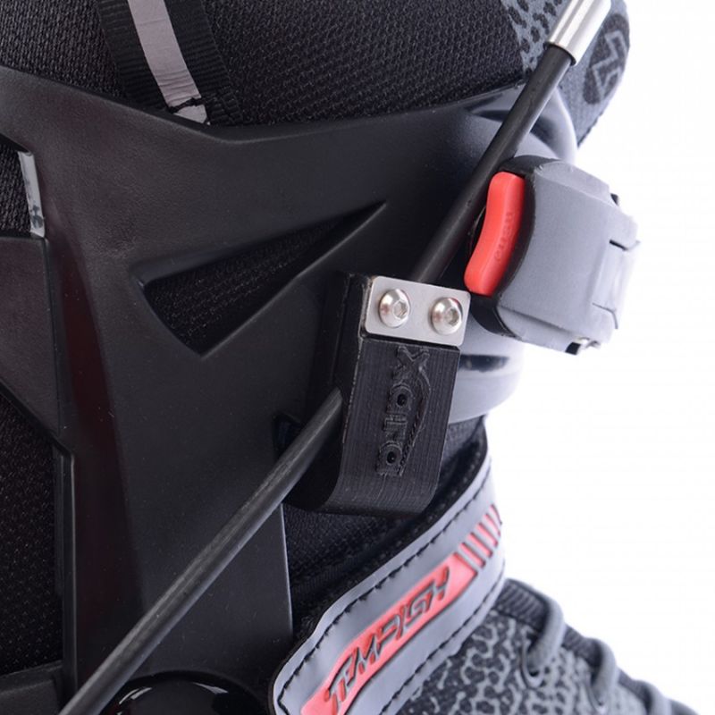 - Die doppellagige Konstruktion mit vollständig herausnehmbarem Innenschuh ist sehr bequem und ermöglicht ein schnelles Trocknen nach dem Fahren und bei Bedarf eine Reinigung. (Der Schuh kann in sauberem, lauwarmem Wasser abgespült werden.)