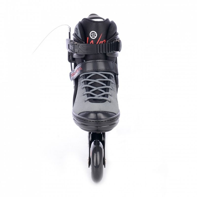 - Die Polsterung um die Achillessehne ist weicher und sorgt für ein angenehmeres Laufgefühl. Die Skates werden mit klassischen Schnürsenkeln, einem Klettverschluss am Mittelfuß und einem Riemen mit Mikroschnalle befestigt.