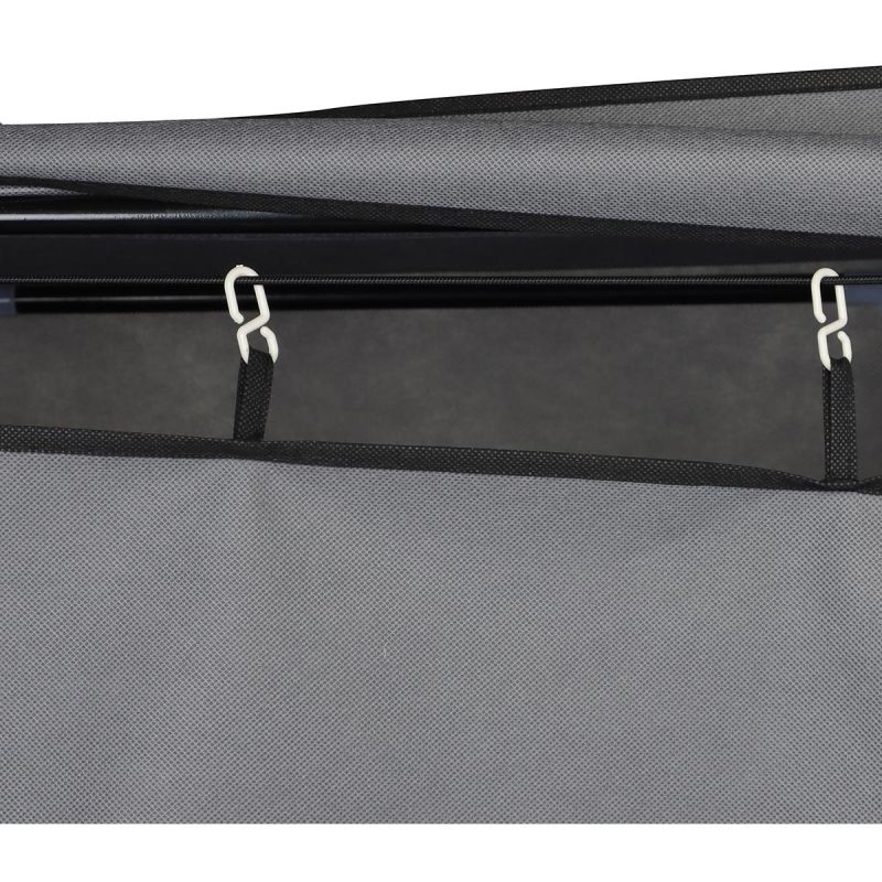 - Materialien: Gehäuseabdeckung – 70 g/m² Vliesstoff, Rahmen – pulverbeschichteter Stahl 13 x 0,2 mm, Verbinder – PP