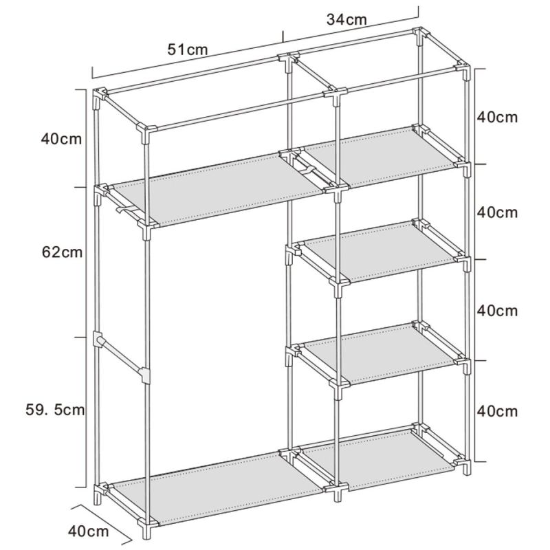 Ein leichter Stoffkleiderschrank ist eine hervorragende Alternative zu einem herkömmlichen, schweren Möbelstück. Er eignet sich perfekt für Räume, in denen kein Platz für einen großen Kleiderschrank ist. Stoffkleiderschränke sind kompakt und passen ideal in kleine Ecken. Dieser Kleiderschrank ist ideal für Schlafzimmer, Büros oder Campingausflüge. Er lässt sich leicht auf- und abbauen und ist einfach zu transportieren. Der Stoff wird mit einem Reißverschluss verschlossen. Dieser Kleiderschrank schützt Ihre Kleidung oder Schuhe vor Staub und Schmutz.