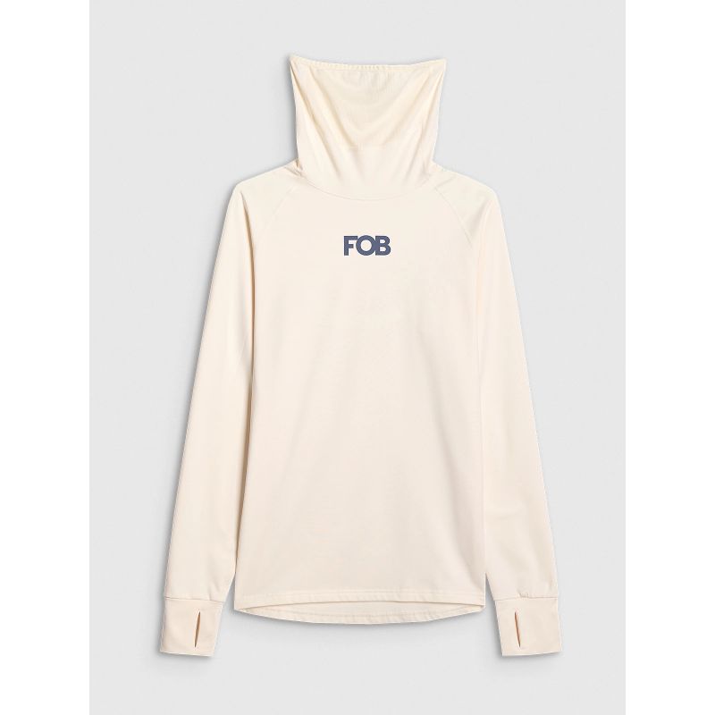 - Ein Rollkragenpullover mit halber Sturmhaubenfunktion – schützt Hals und Gesicht vor dem Wind